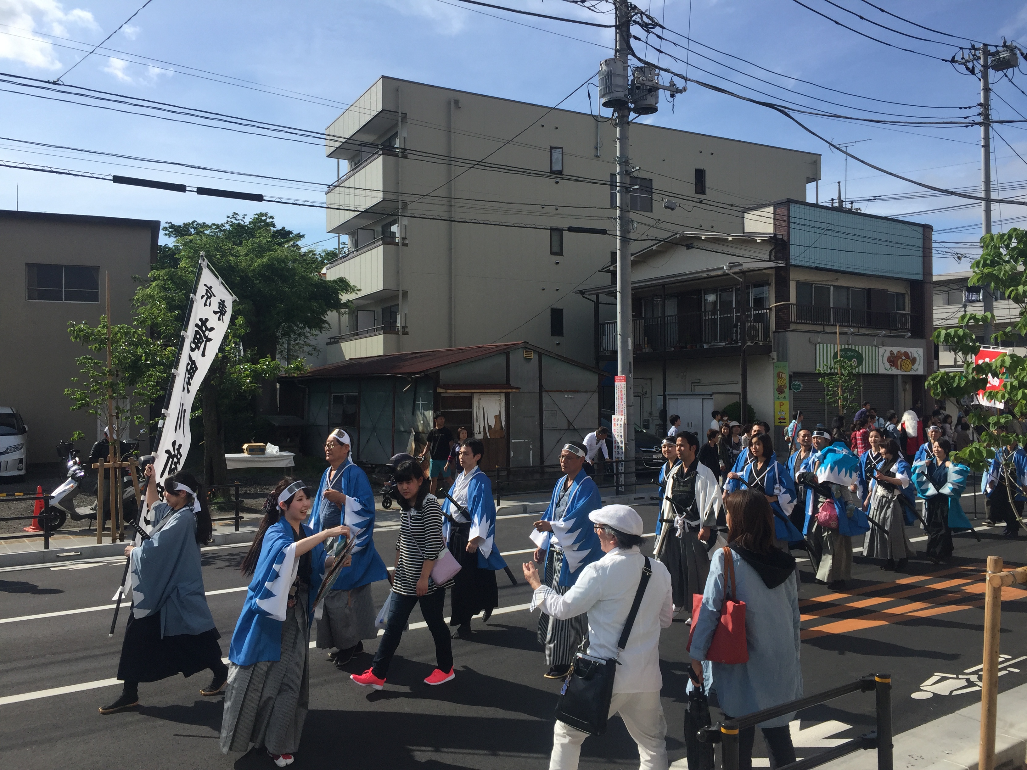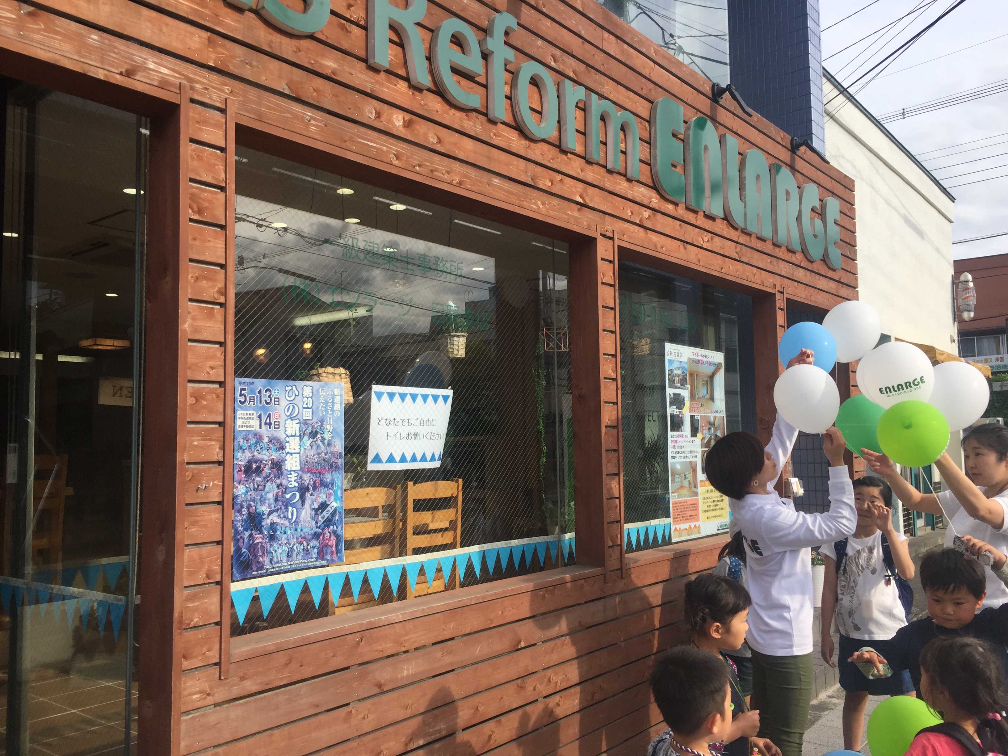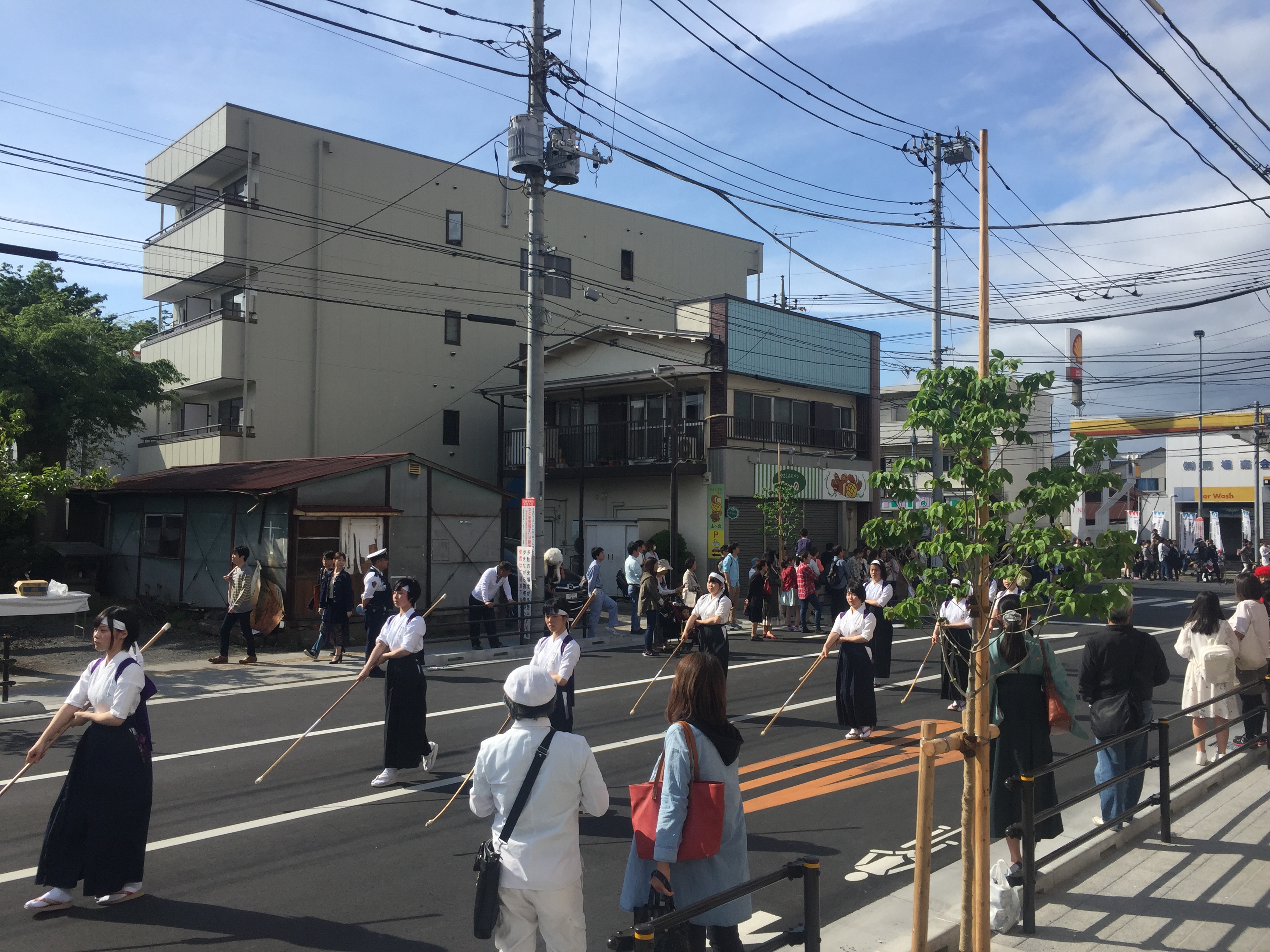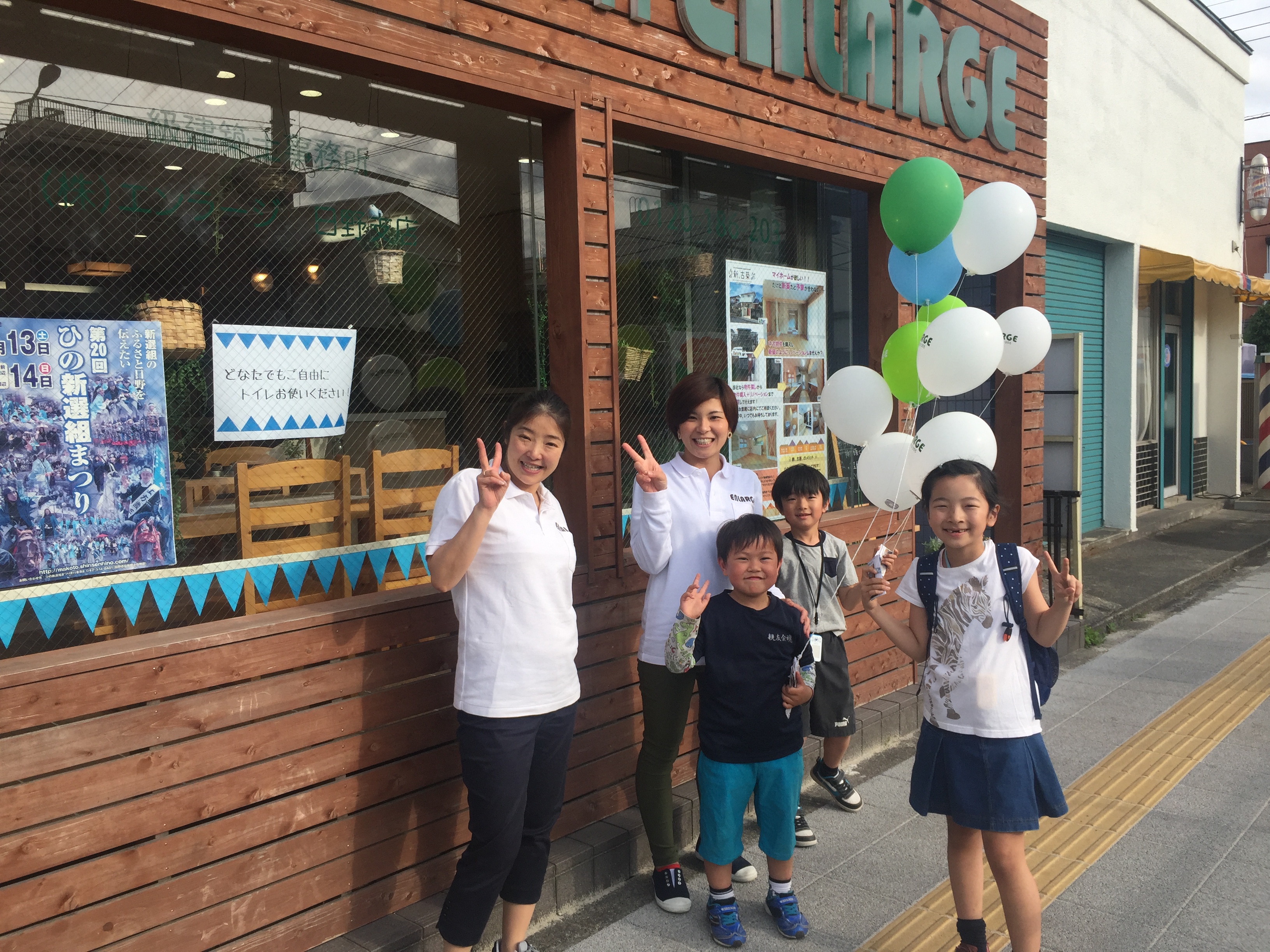 私たちは、新選組カラーの風船を小さい子たちに配って盛り上げました![]()