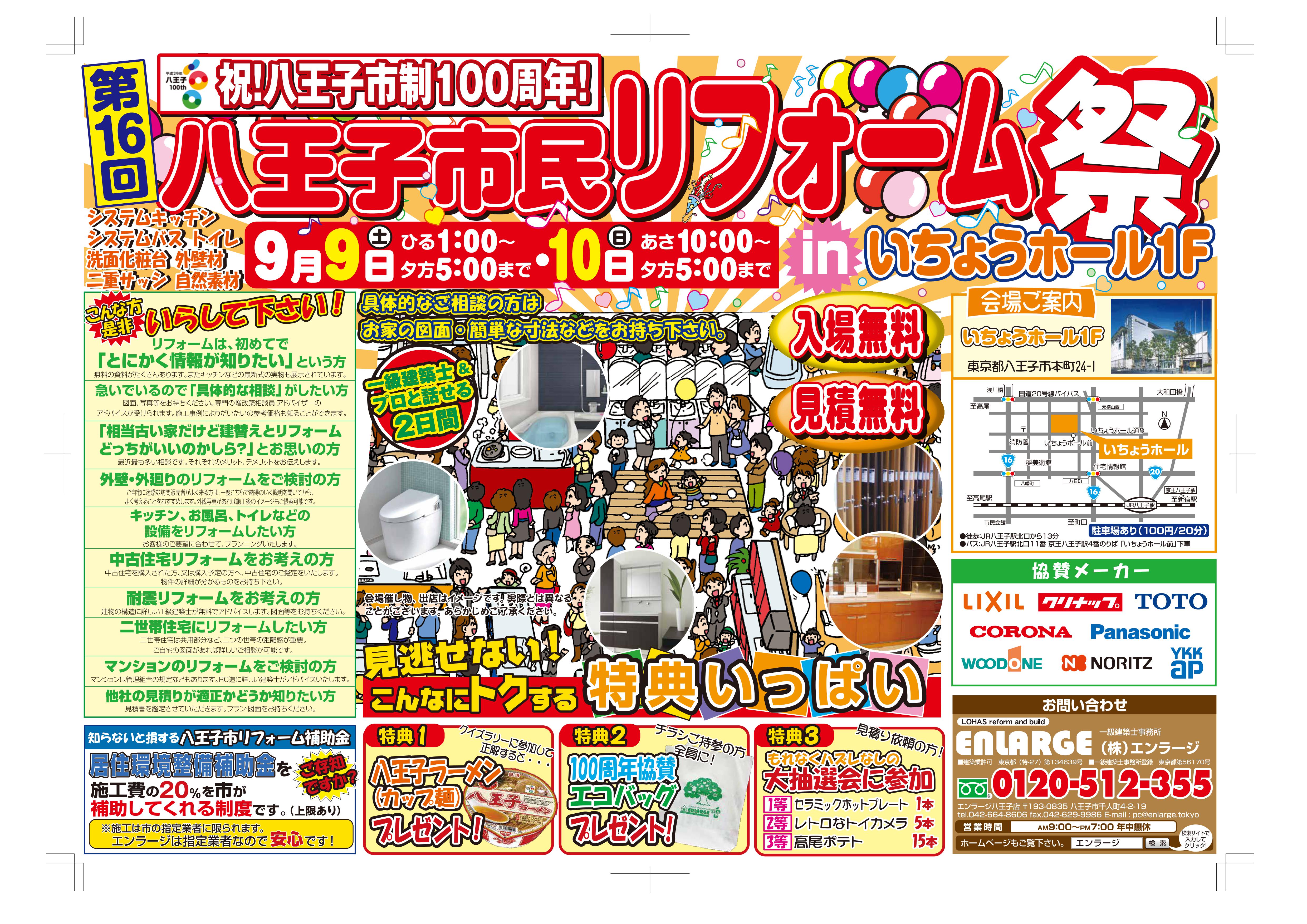 9日(土)と10日(日)は、エンラージ主催 “八王子市民リフォーム祭”を開催します