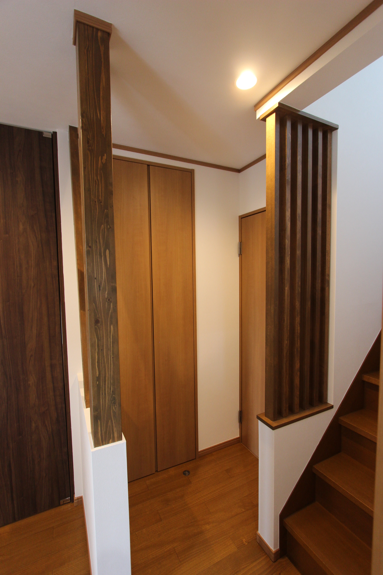 階段の側面の小壁も合わせて格子のデザインを入れました