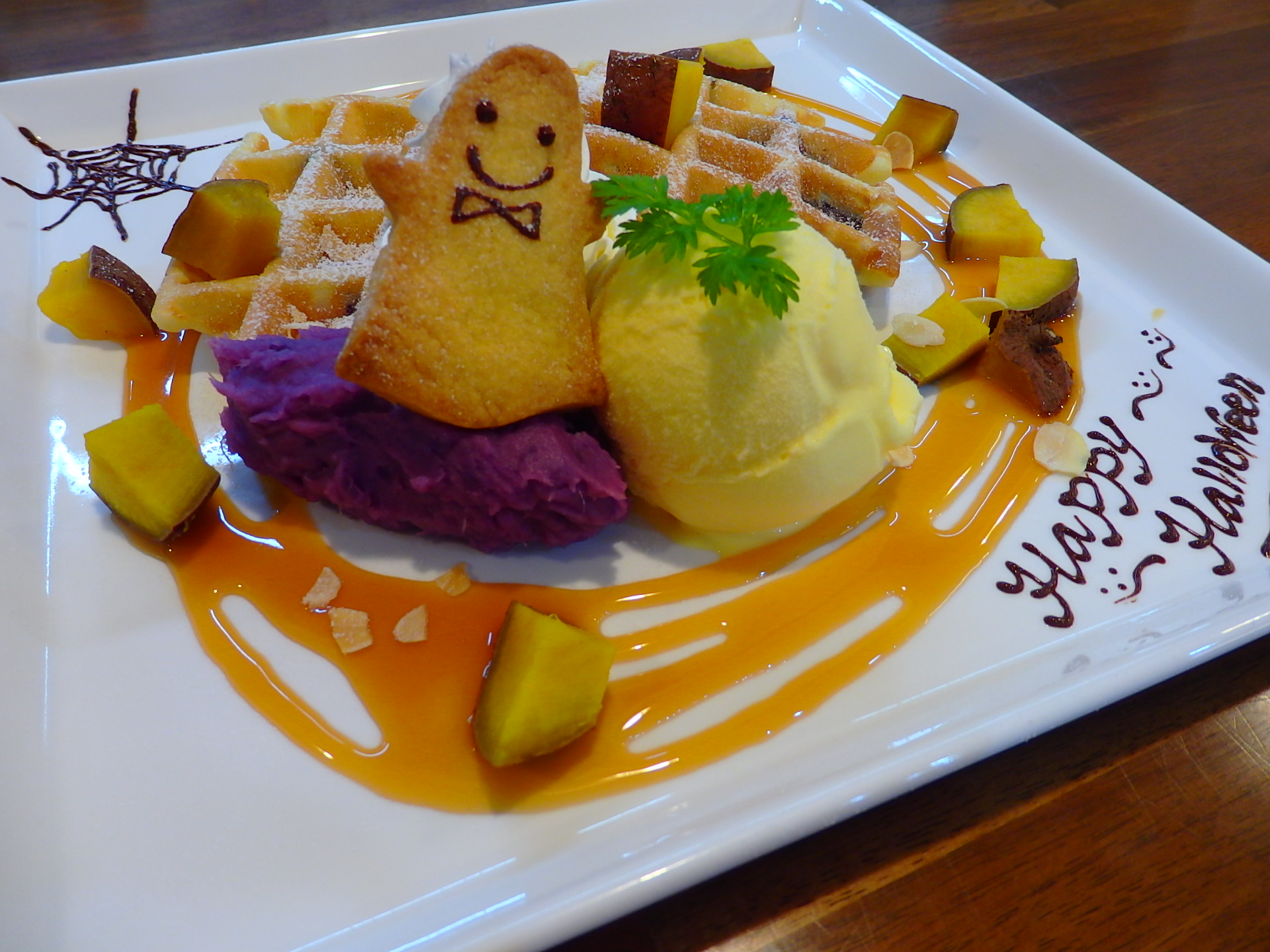 ワッフルの生地にカットした安納いもを加えて焼き上げた