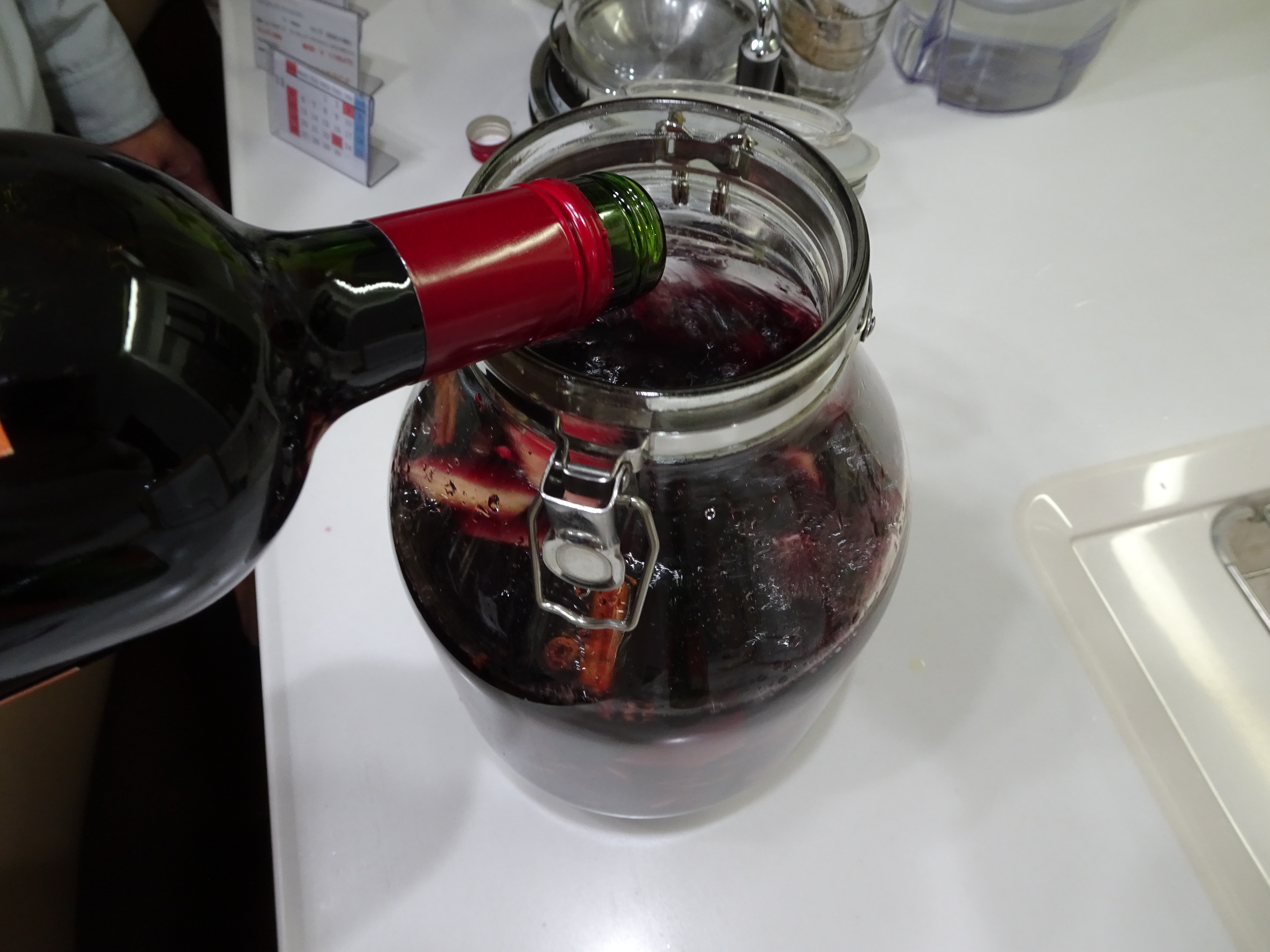 さらにスパイス、はちみつを入れて、ワインを注ぎます。