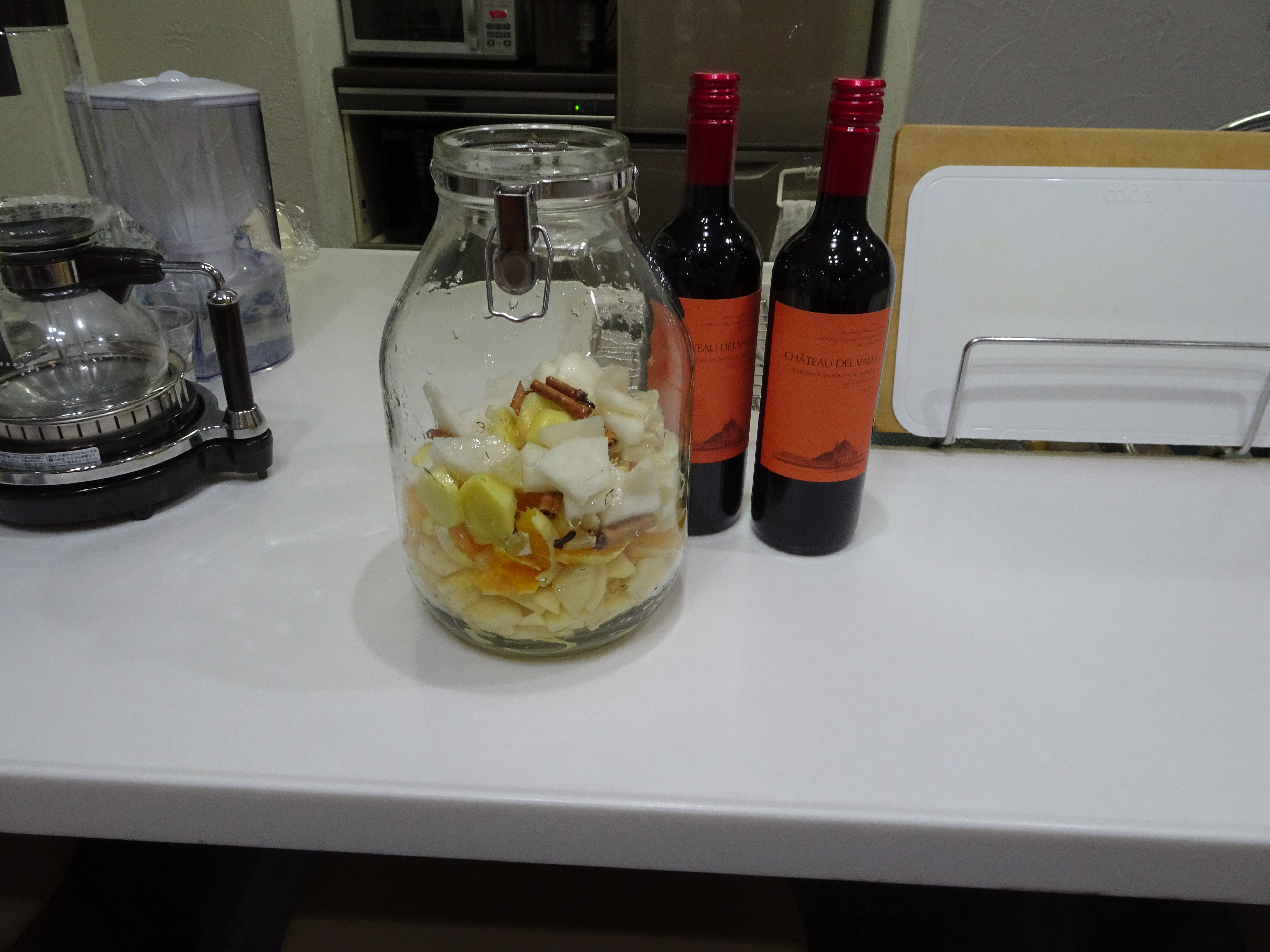 ホットワインは、1週間フルーツに漬け込んで作ります。