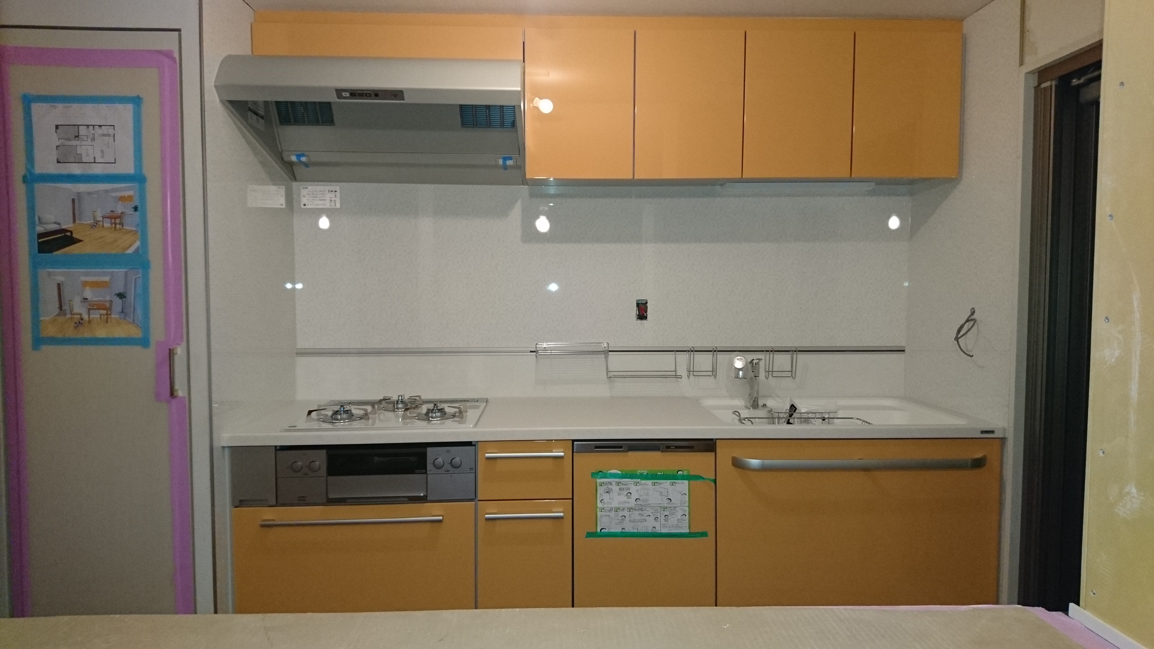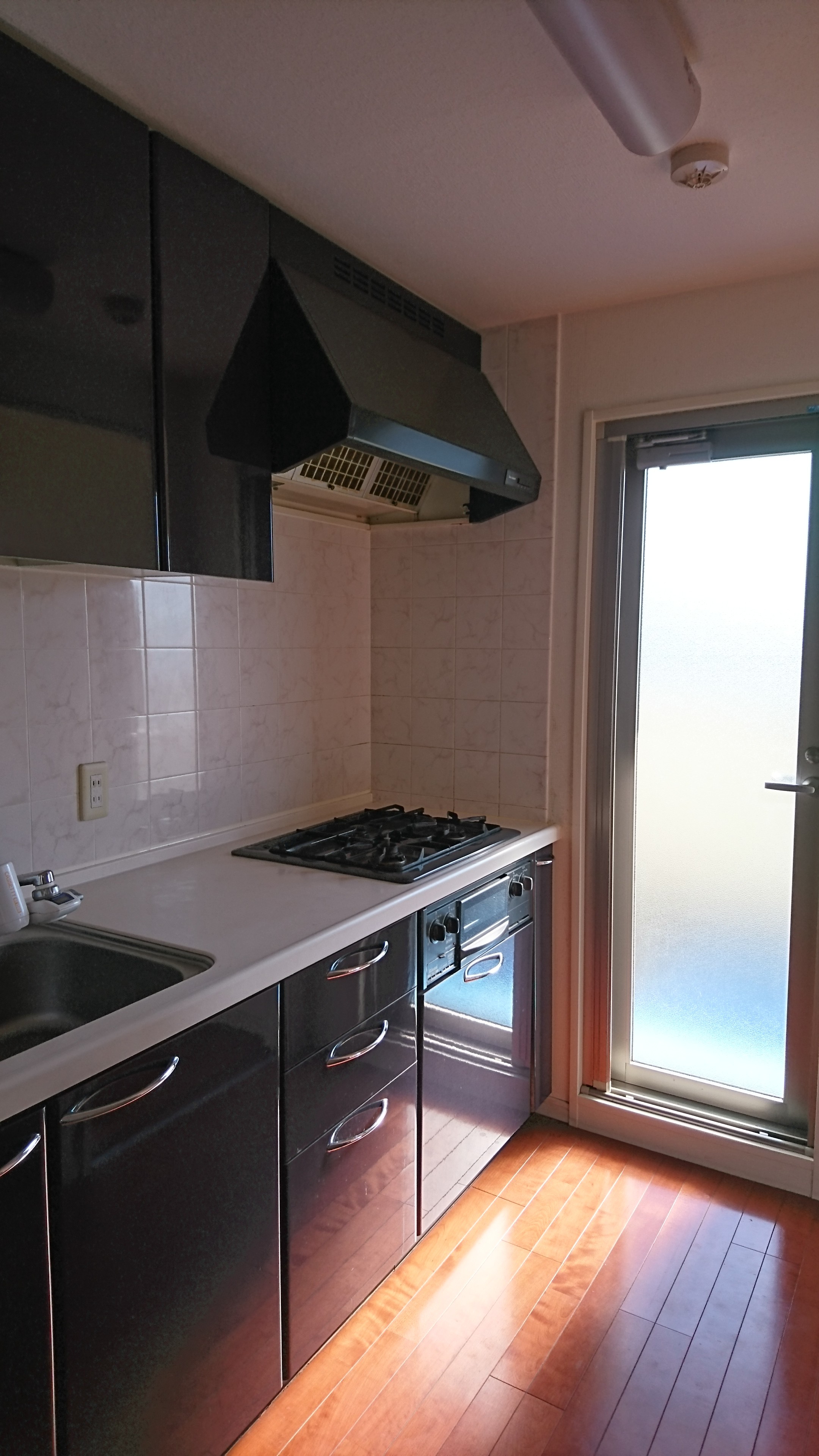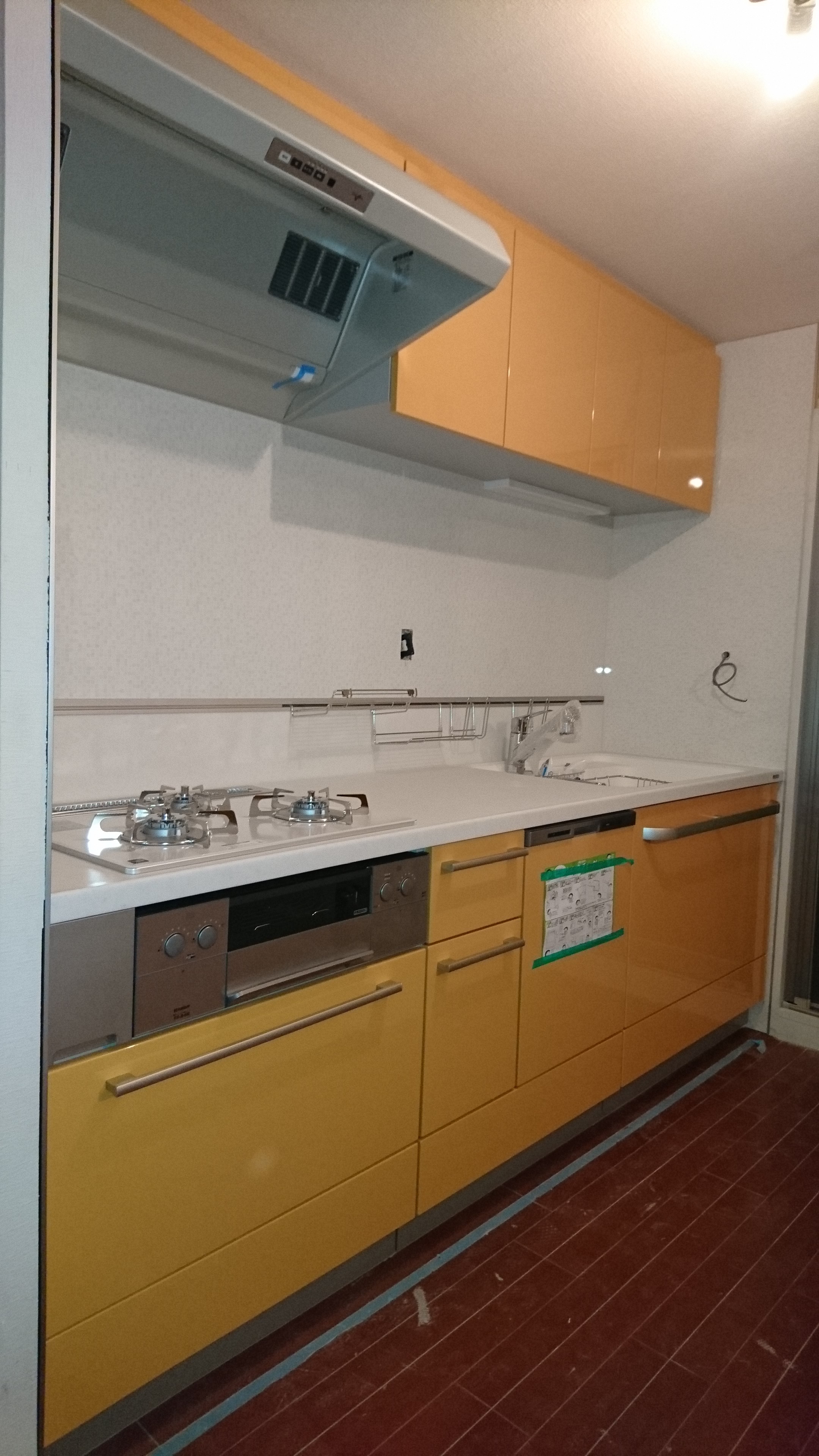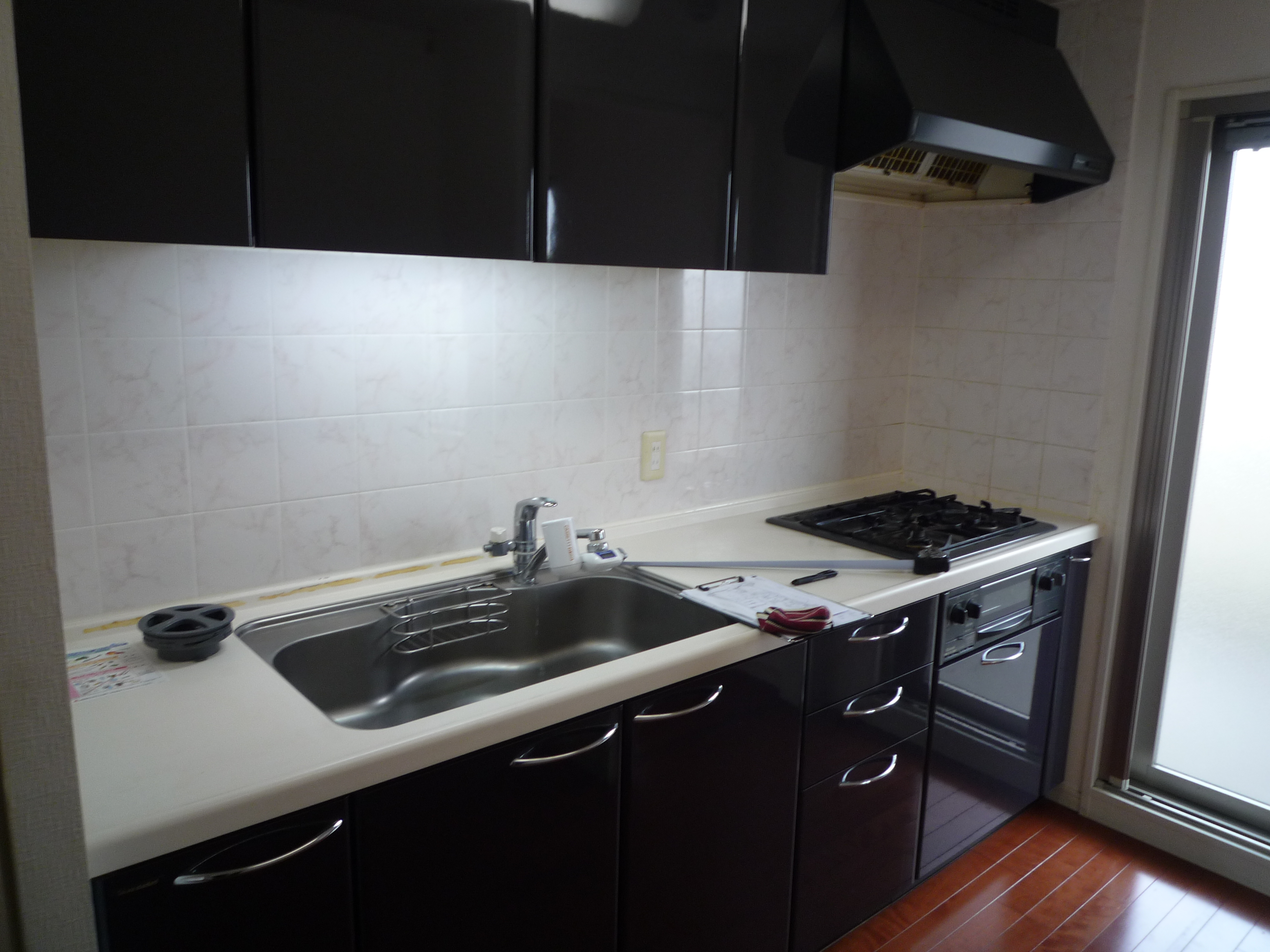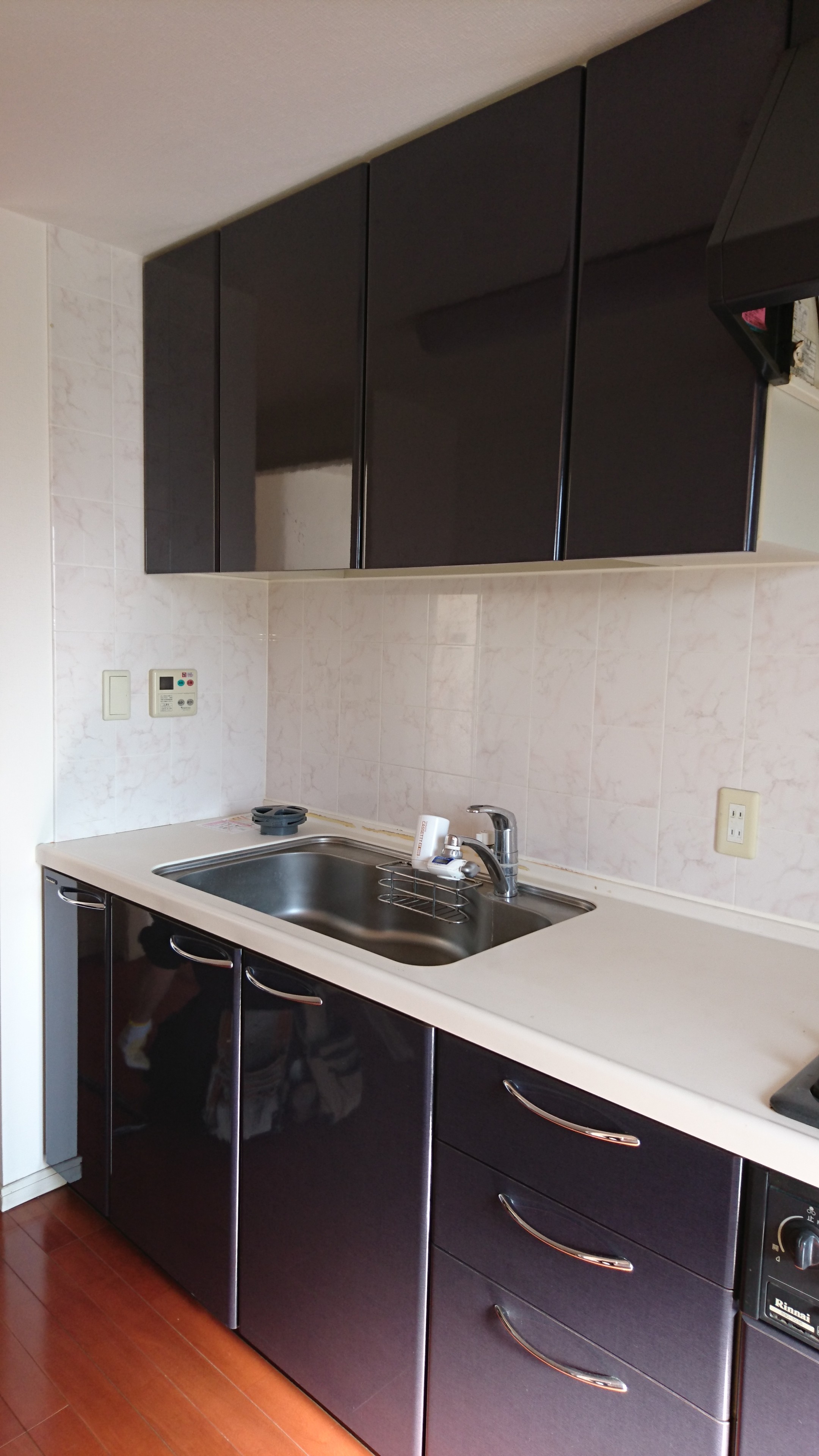 既存は濃い色の面材で、シックな印象のキッチンでした。