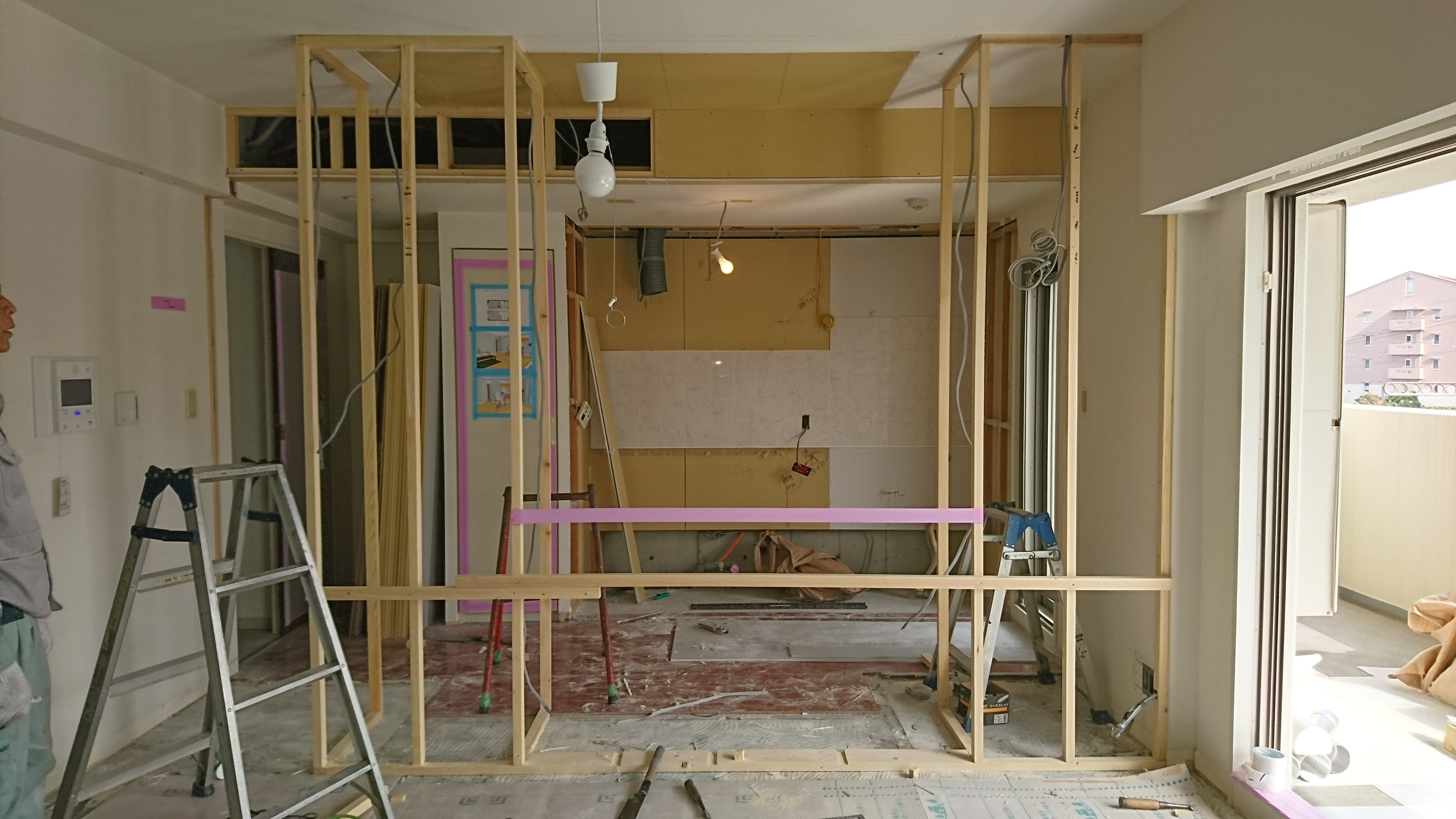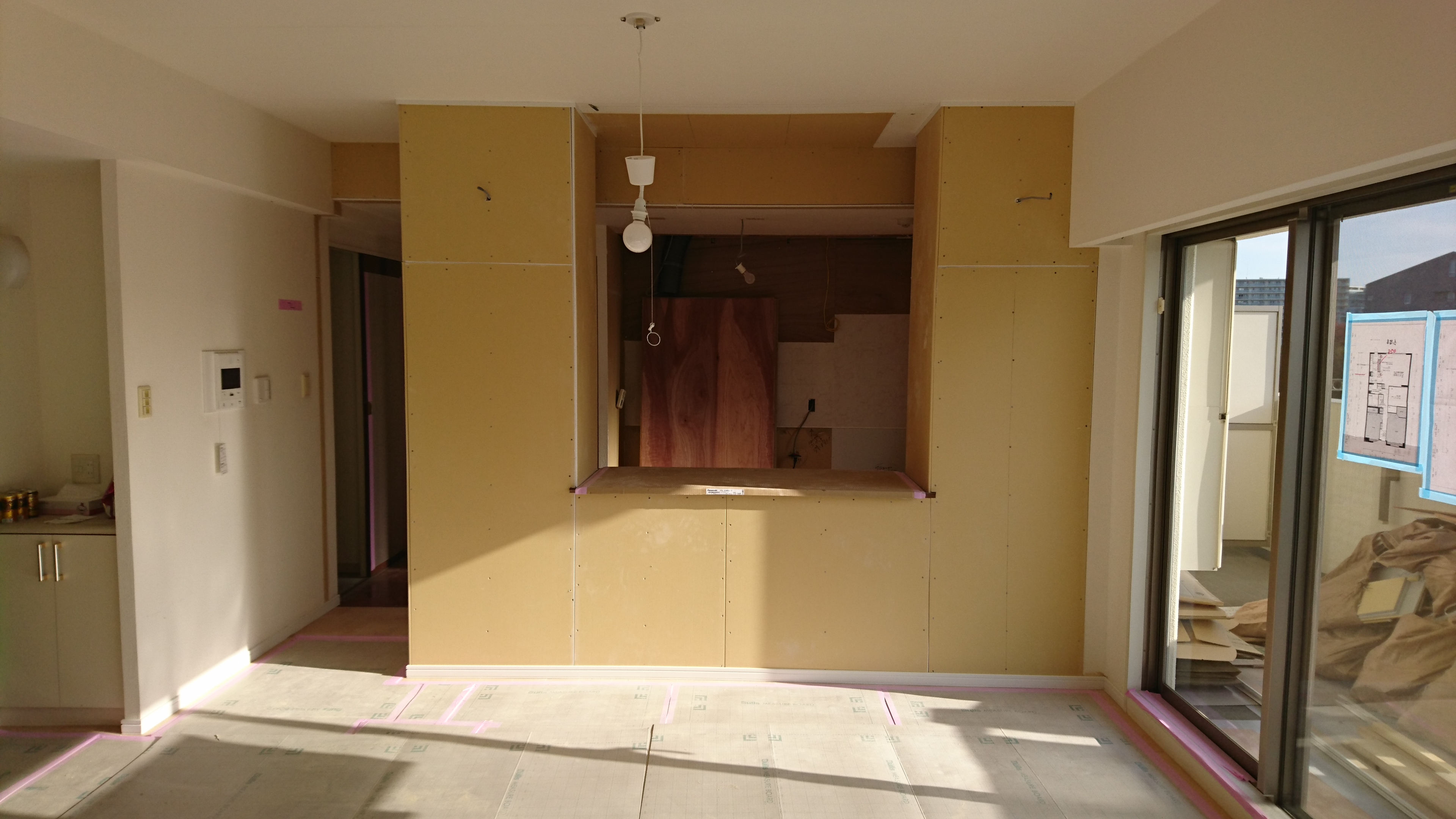 今回は、リビング側の一面を漆喰塗りで仕上げます。
