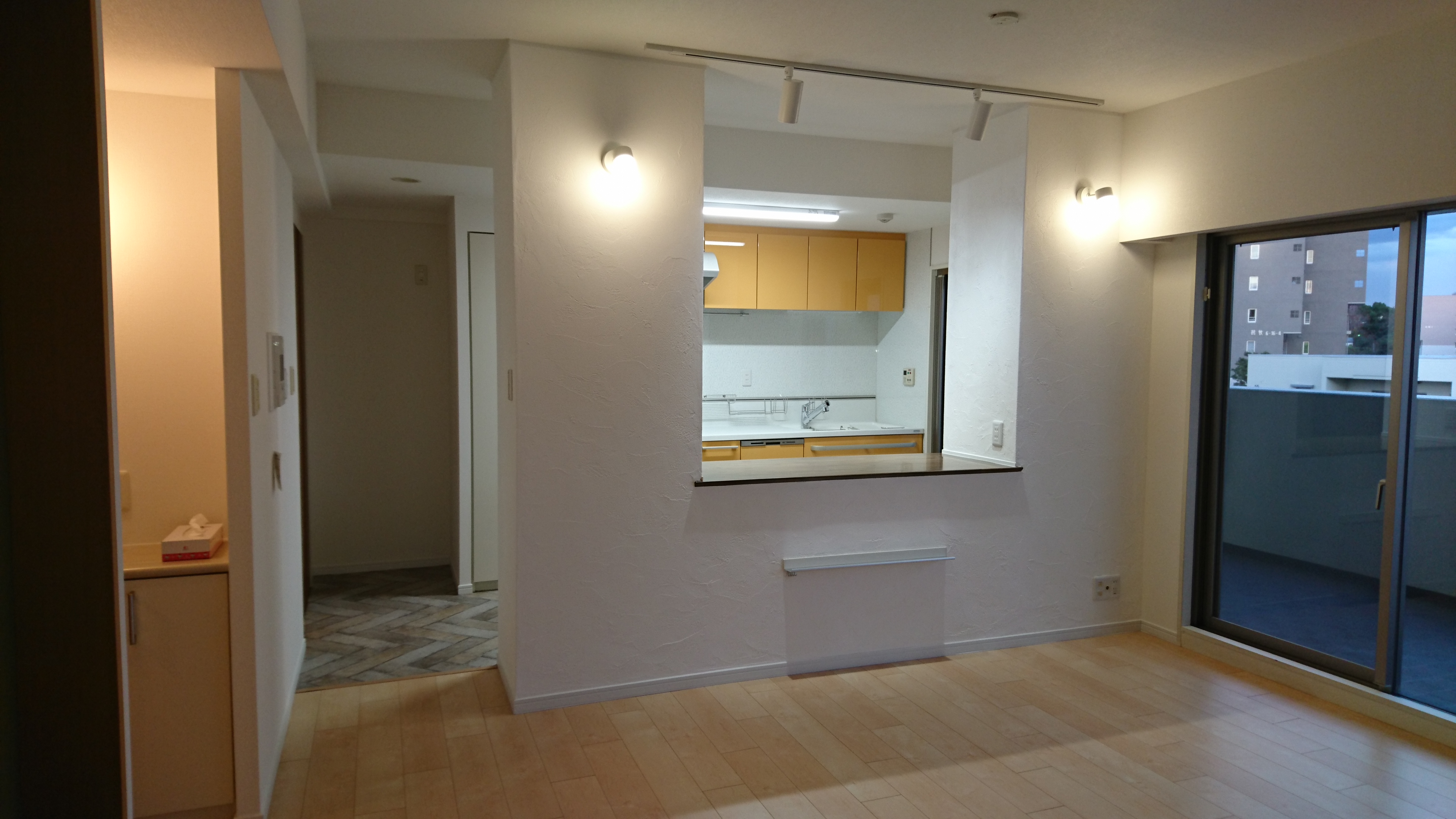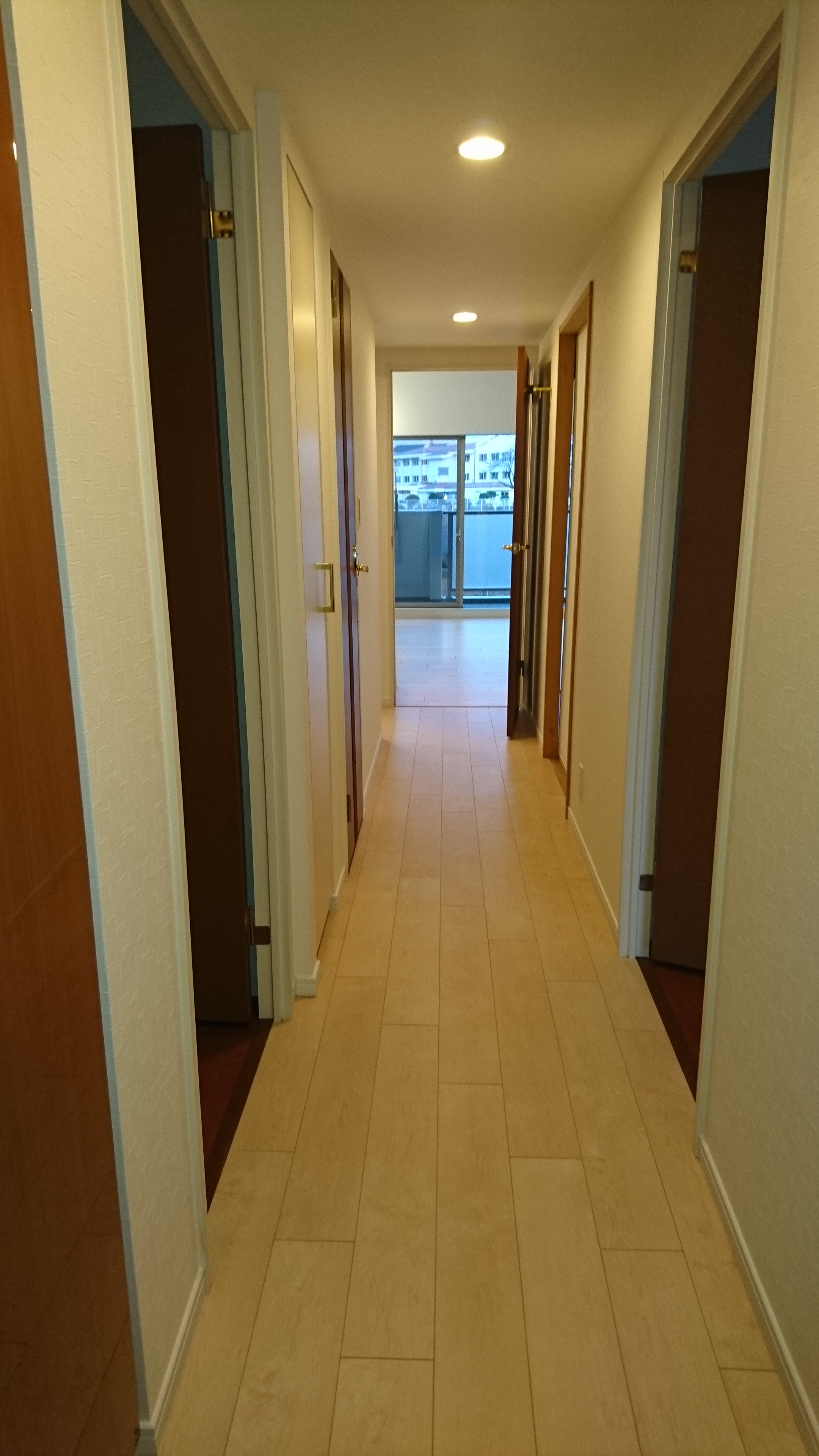 リビングから廊下のフローリングは、メイプル柄のものに貼り替えて