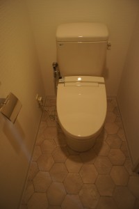 キッチンの床は、既存のフローリングの上にクッションフロアを上貼りしました。