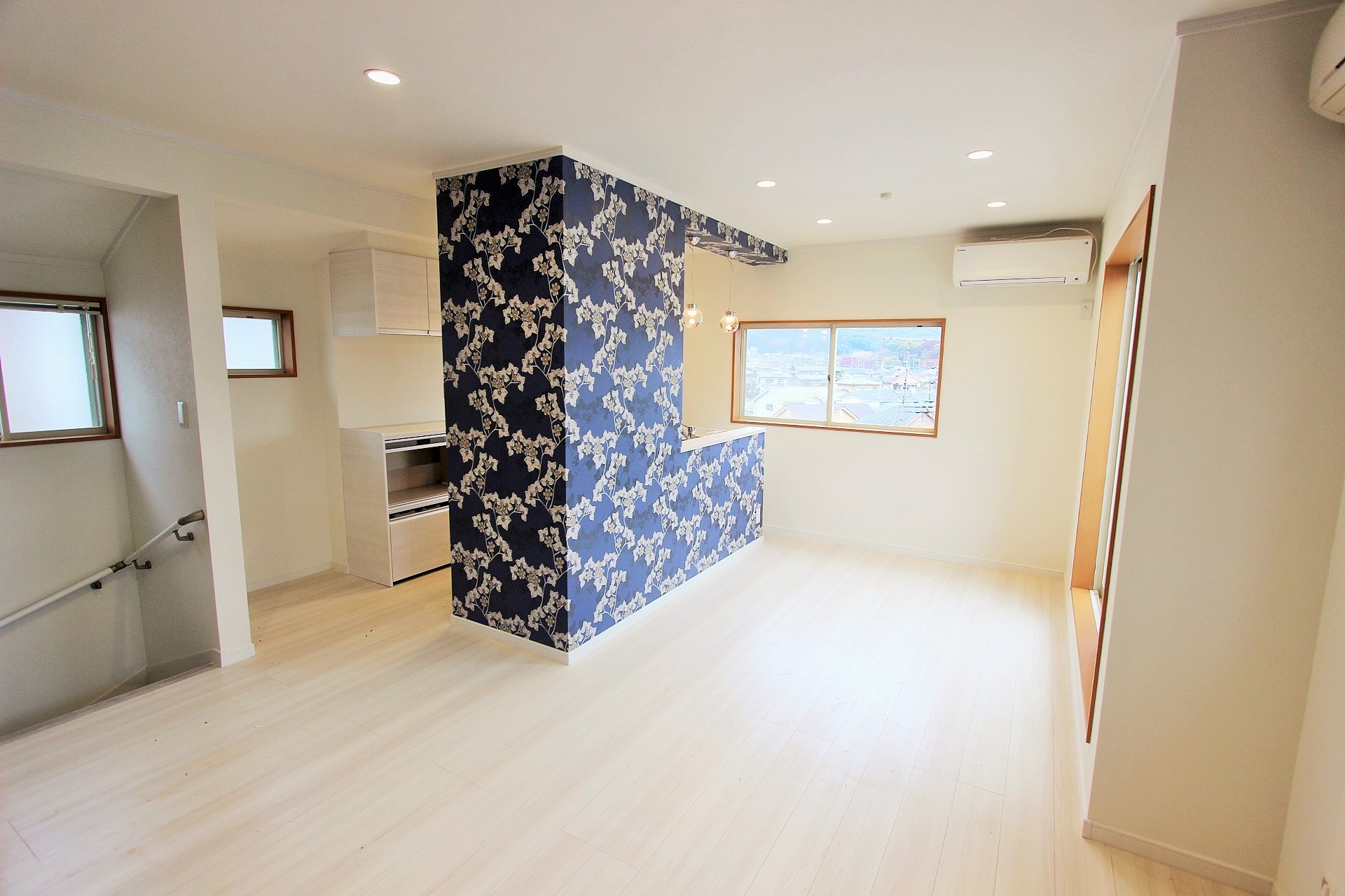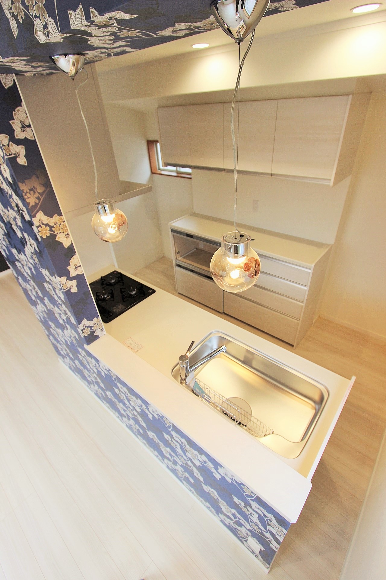ブルーはアクセントクロスやキッチンの色で使うことにしました。