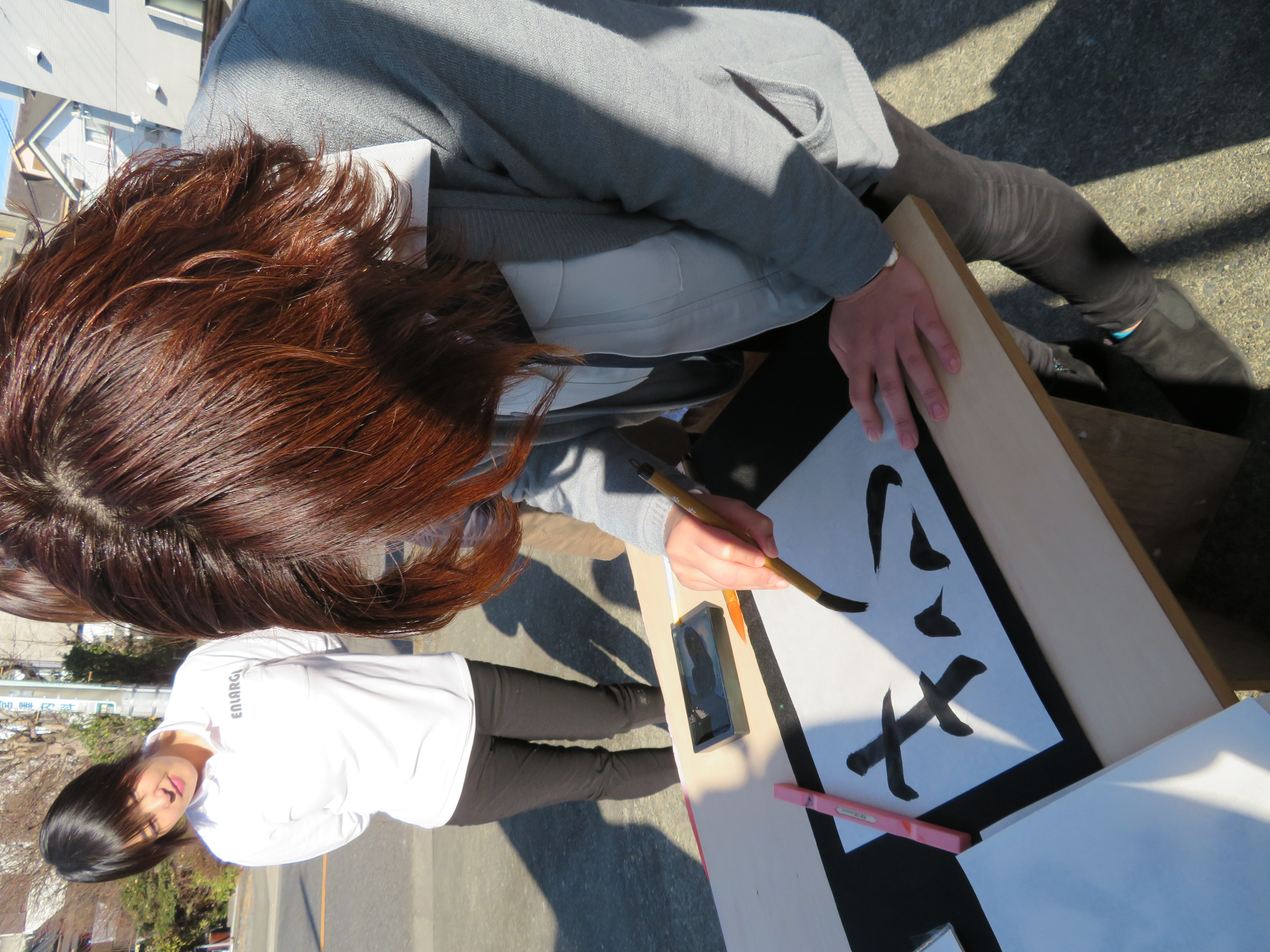 書初め大会と珪藻土(スイス漆喰)塗り体験も行っております。