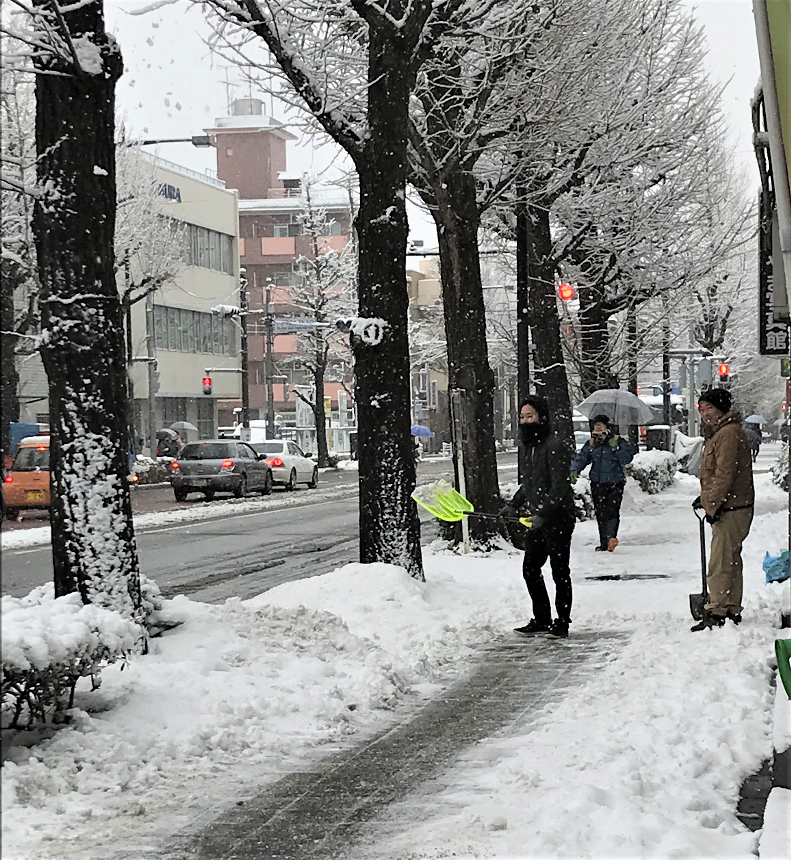 監督たちは隣のお店の前も歩く人の為に雪かき!