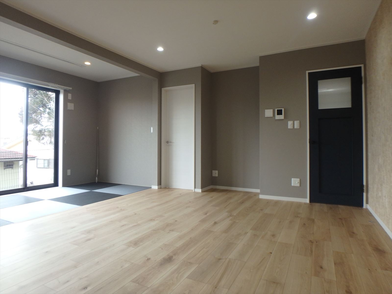 ネイビーブルーのリビングドアも良いアクセントになっています。