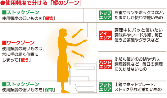使用頻度の高いモノから優先に使いやすい場所へ。