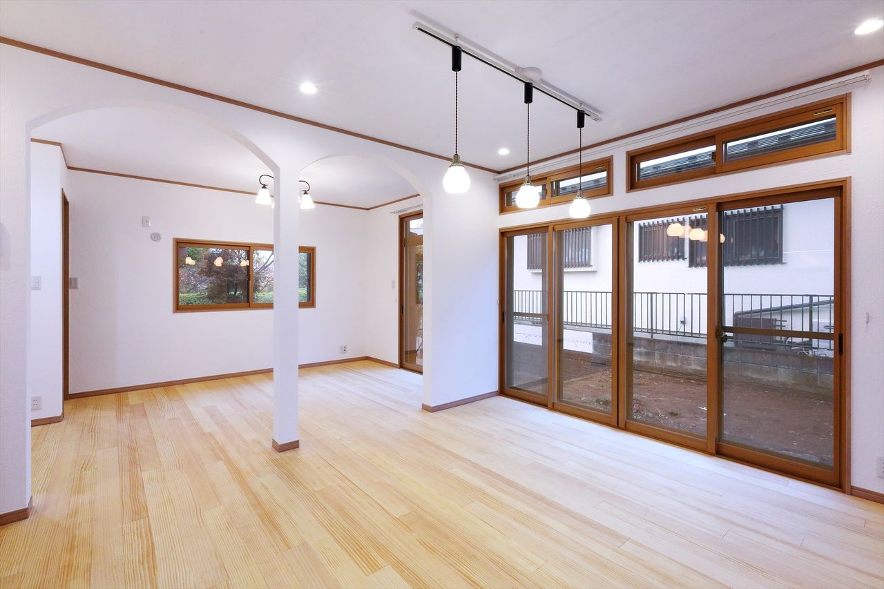 間仕切り壁の開口をアーチ状にしてデザインとして活かしました。