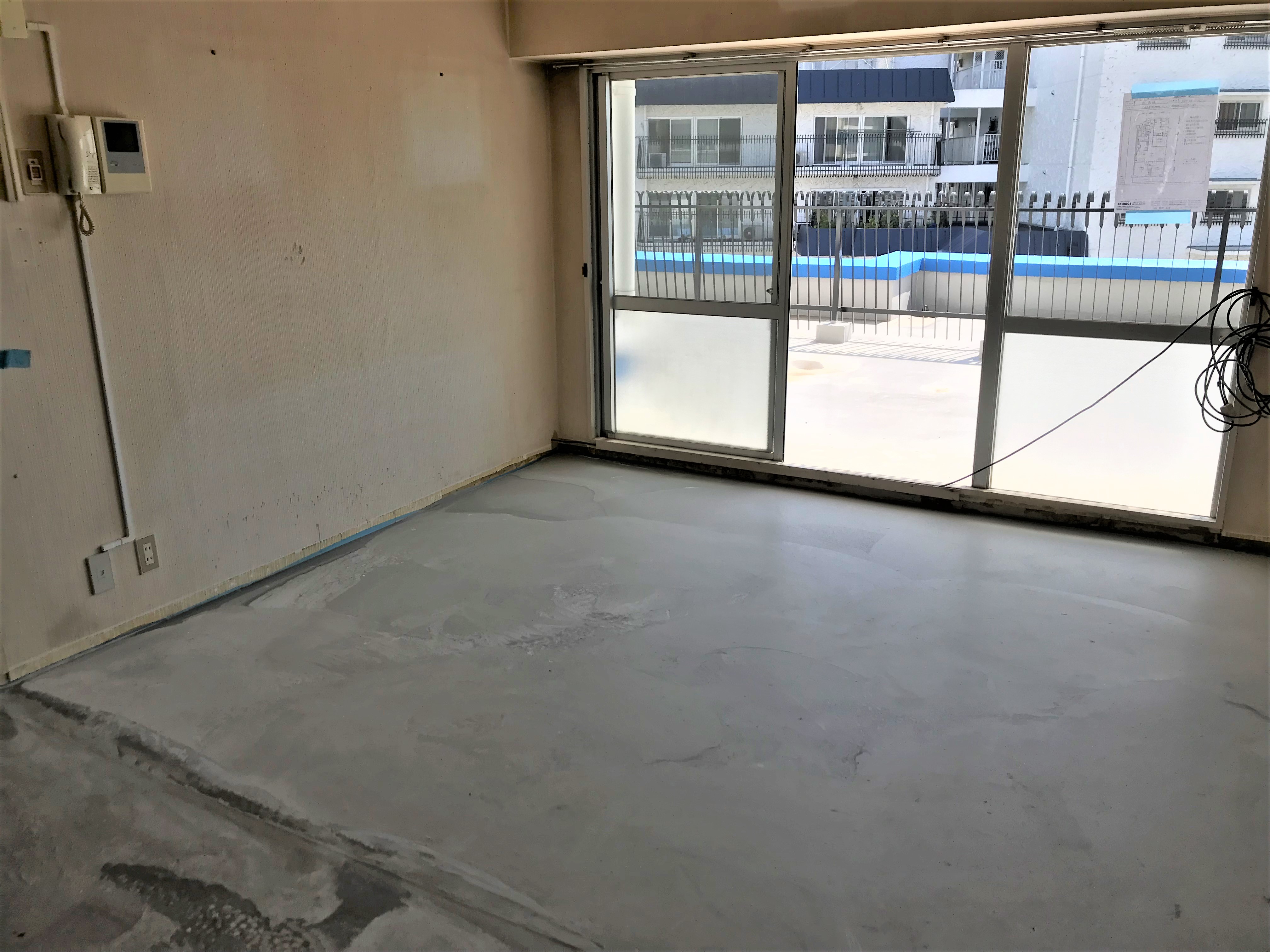 ですが、床のコンクリートはこの状態でもデコボコしたままです