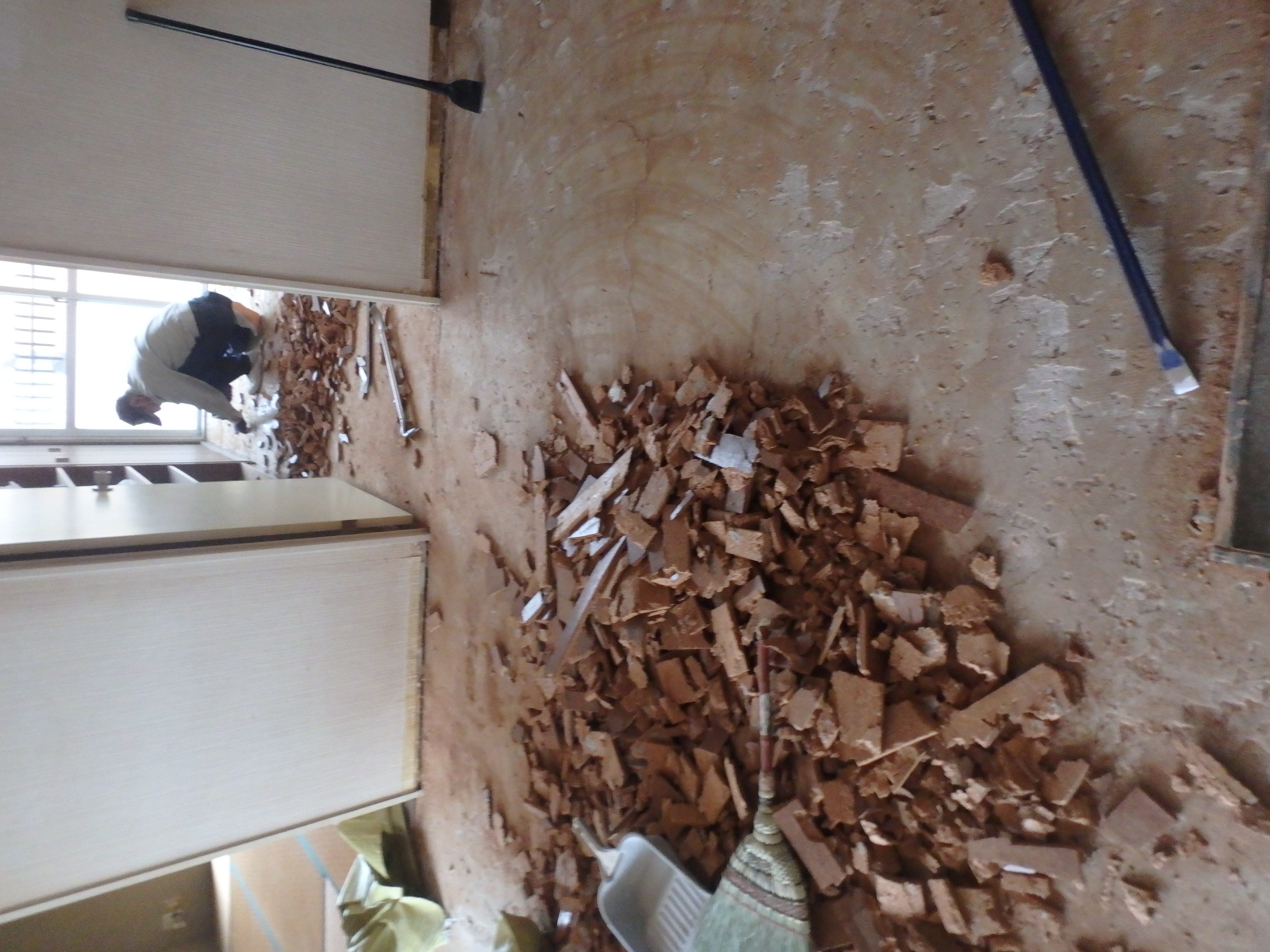 作業としてま、まず状態の悪い既存コルクを剥がします。