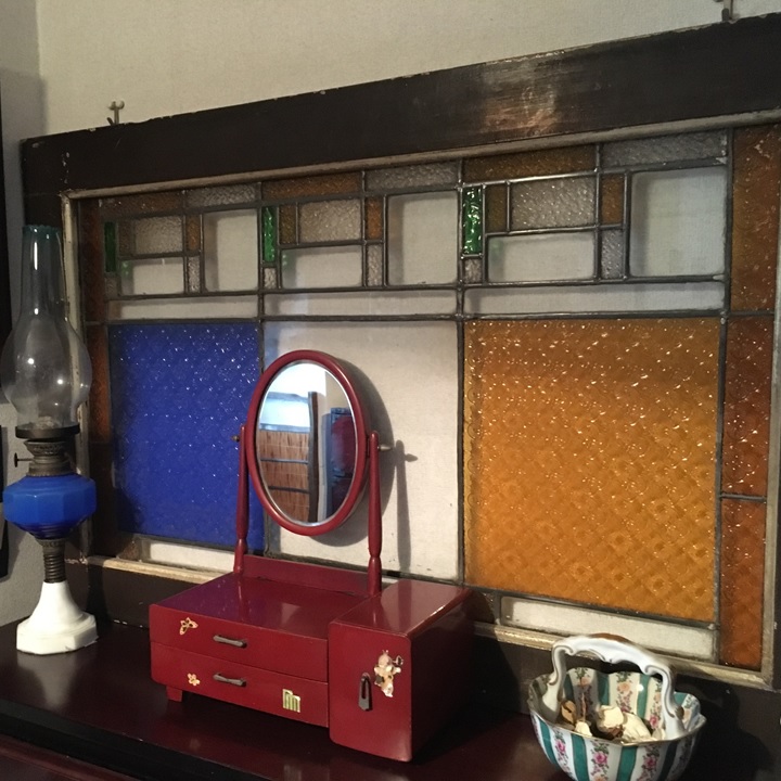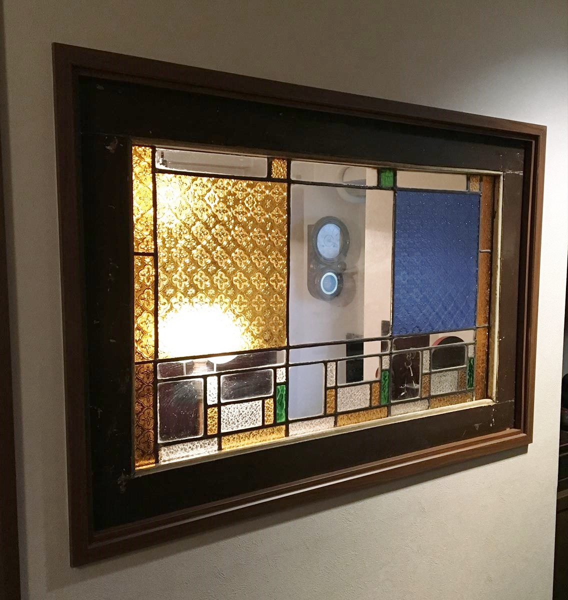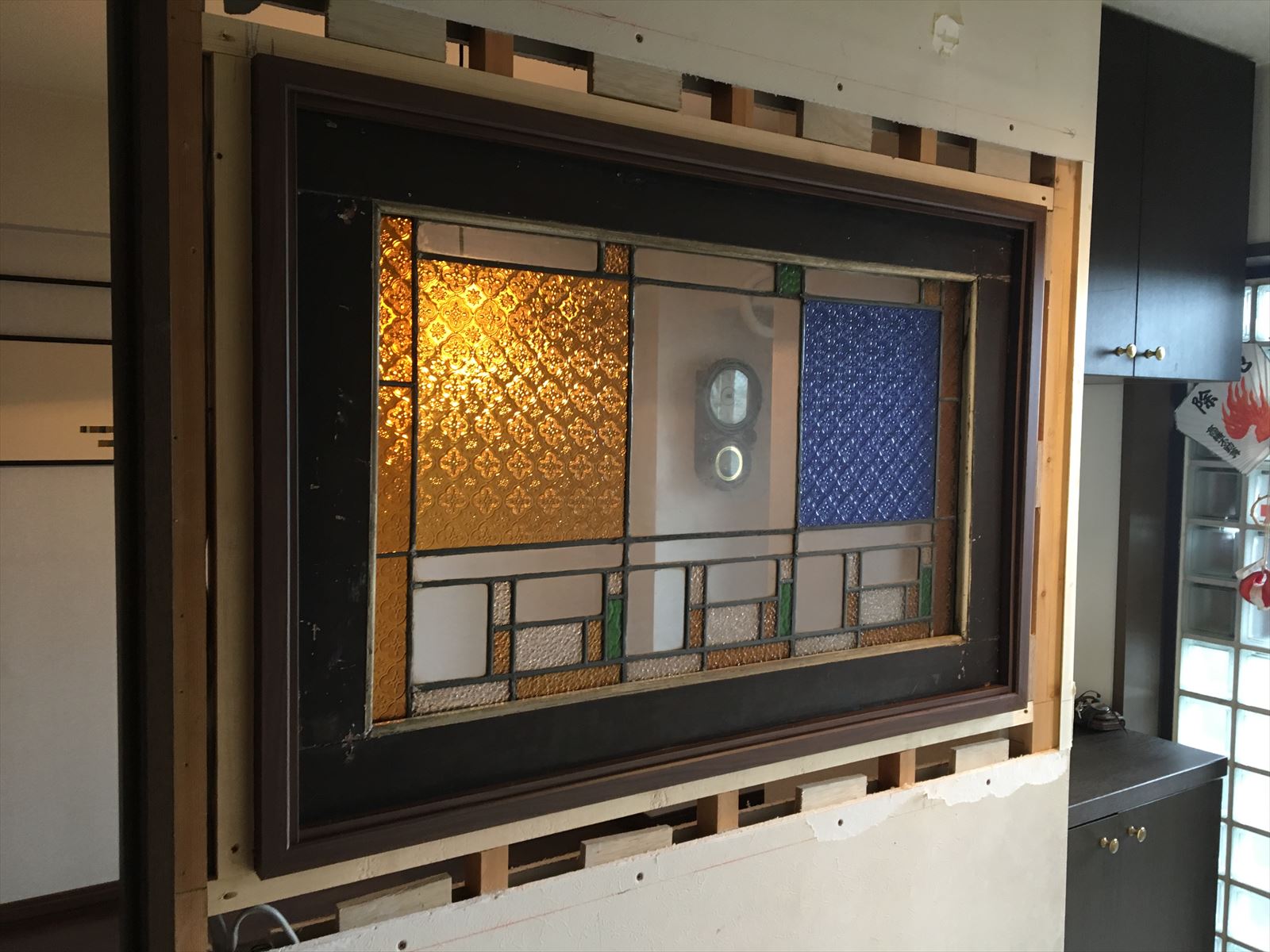 タンスの上に飾ってあったステンドグラスは、廊下の壁を開口して埋め込みました!