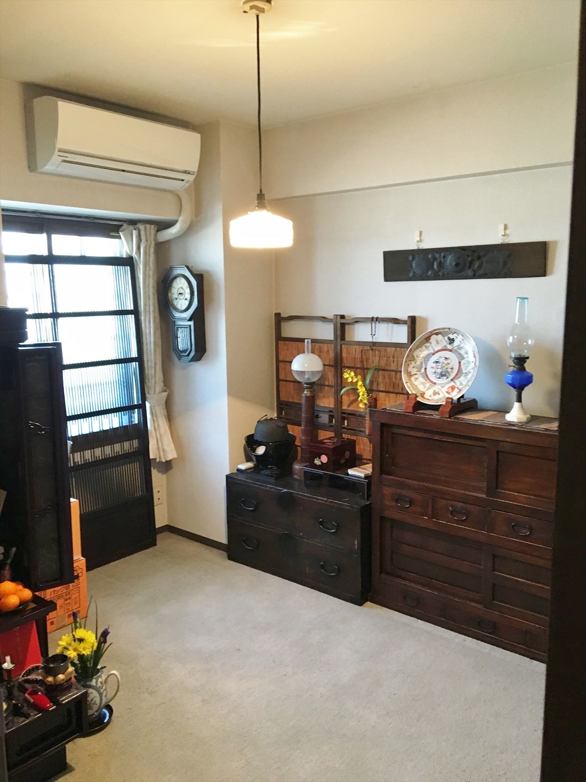 和箪笥を置くスペースと、窓際にはフローリングを貼って