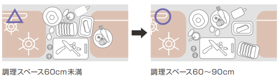 この距離を適切にすると、動きやすく作業しやすいキッチンになります![]()