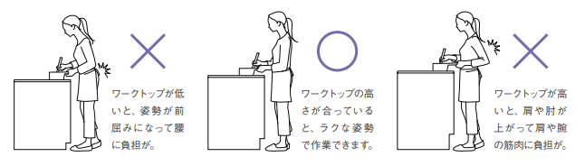 また、システムキッチンでは、ワークトップの高さを選べるってご存知ですか![]()
