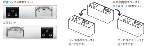 左右に食材や調味料が仮置きできるスペースがあると