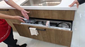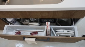引き出し収納は奥まで大容量に収納できるのが魅力ですが、普段の調理では奥まで引き出すことは少なく、手前だけの引き出しで、普段出し入れをしていることが多いですよね。