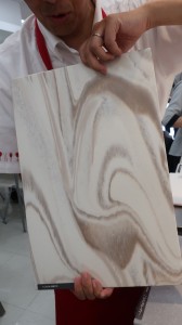 衝撃に強く、美しさが長続きするのが特徴ですが、人工大理石とは思えない「流れ模様」のデザインは圧巻でした!