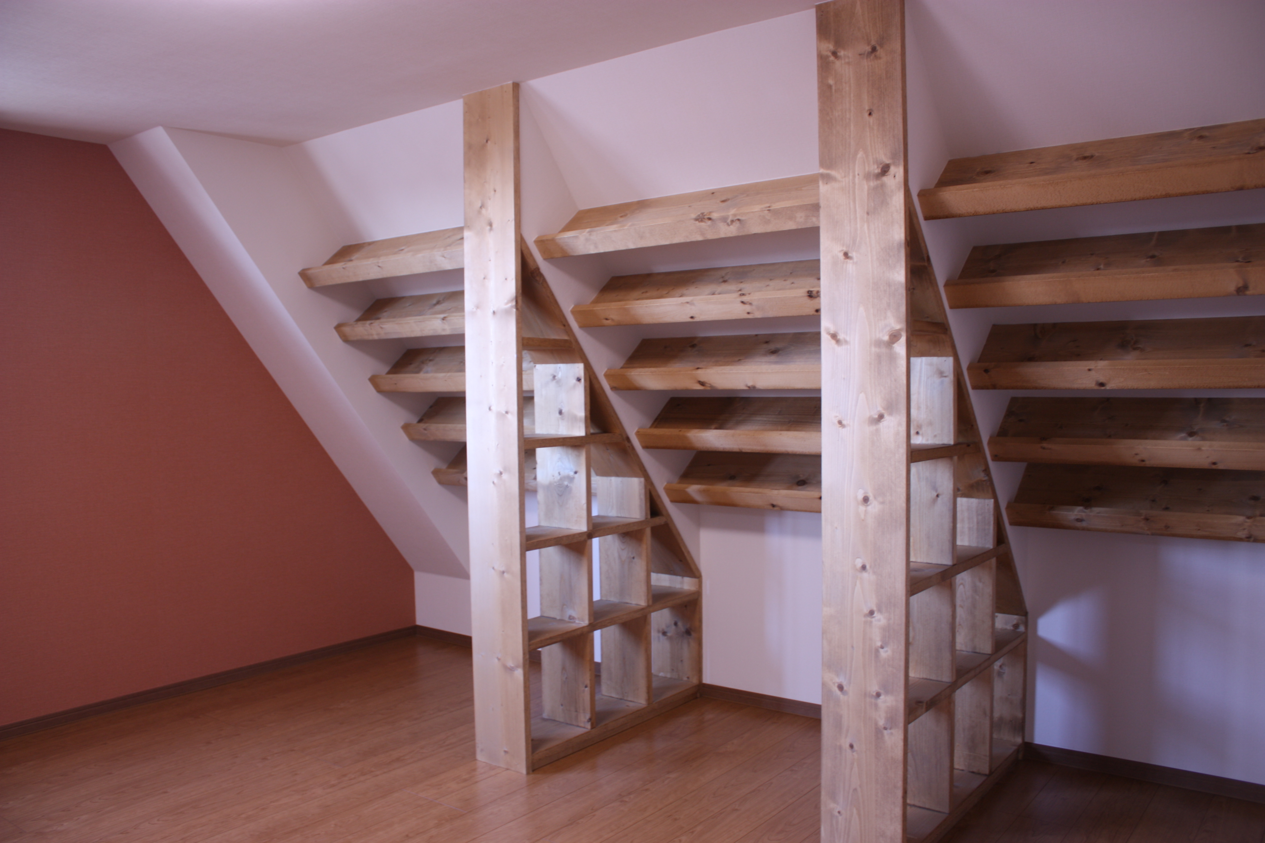 《勾配天井を利用したマガジンラック》