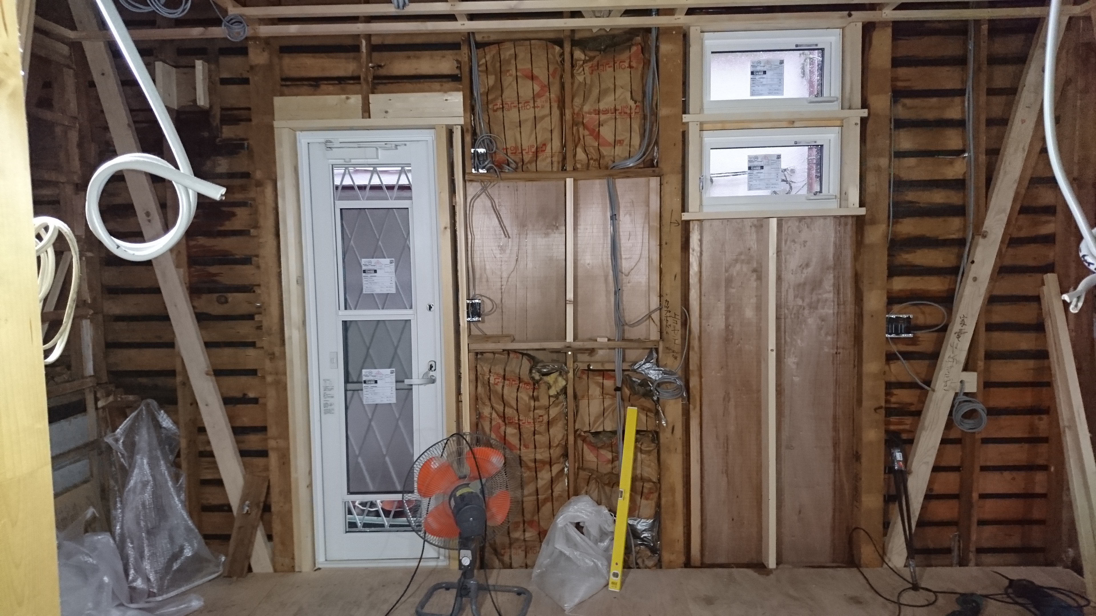 ⇩勝手口の新設、窓位置移動で使い勝手の良い空間に 筋交い補強で耐震もばっちり