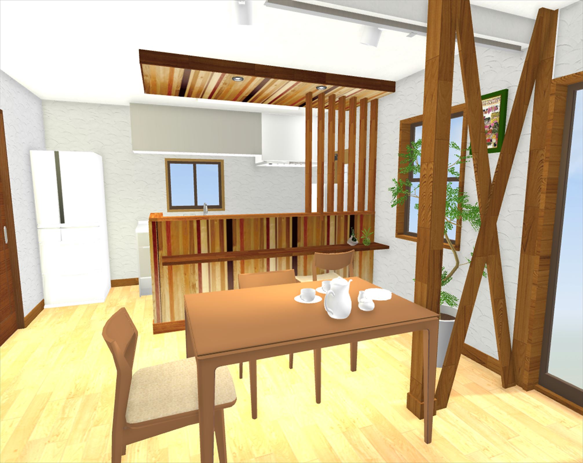 ↓構造上撤去できない筋交いが出てくることを想定し、そちらを活かすプランとなっております。