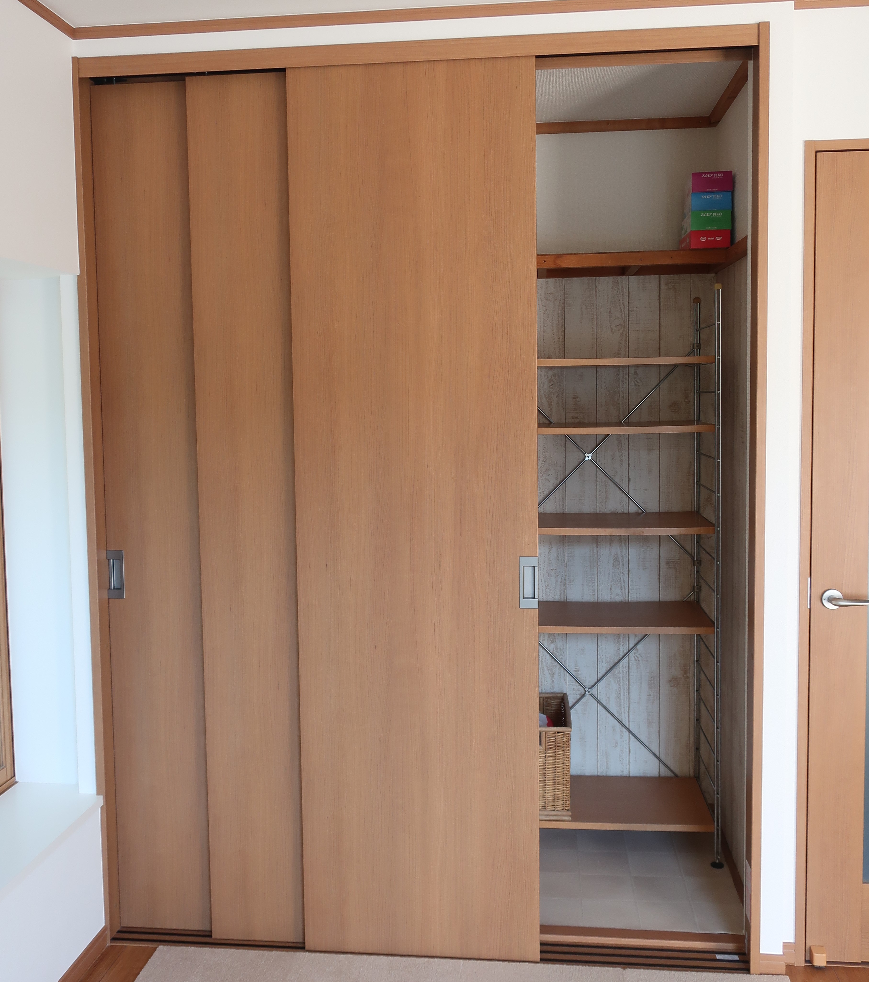 天井までの3枚の引き戸に変え、扉が連動で動くのでとても使いやすくなりました。