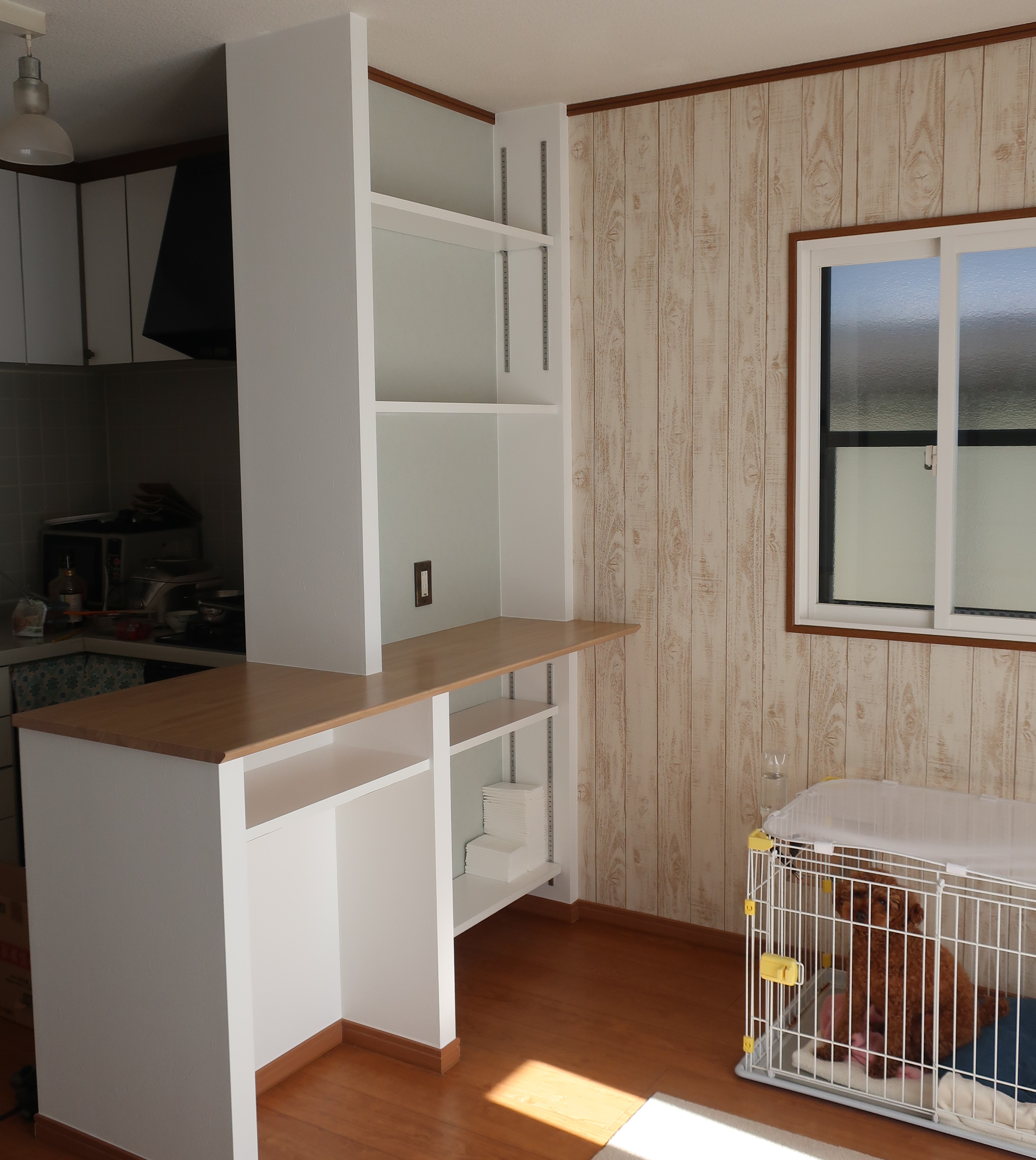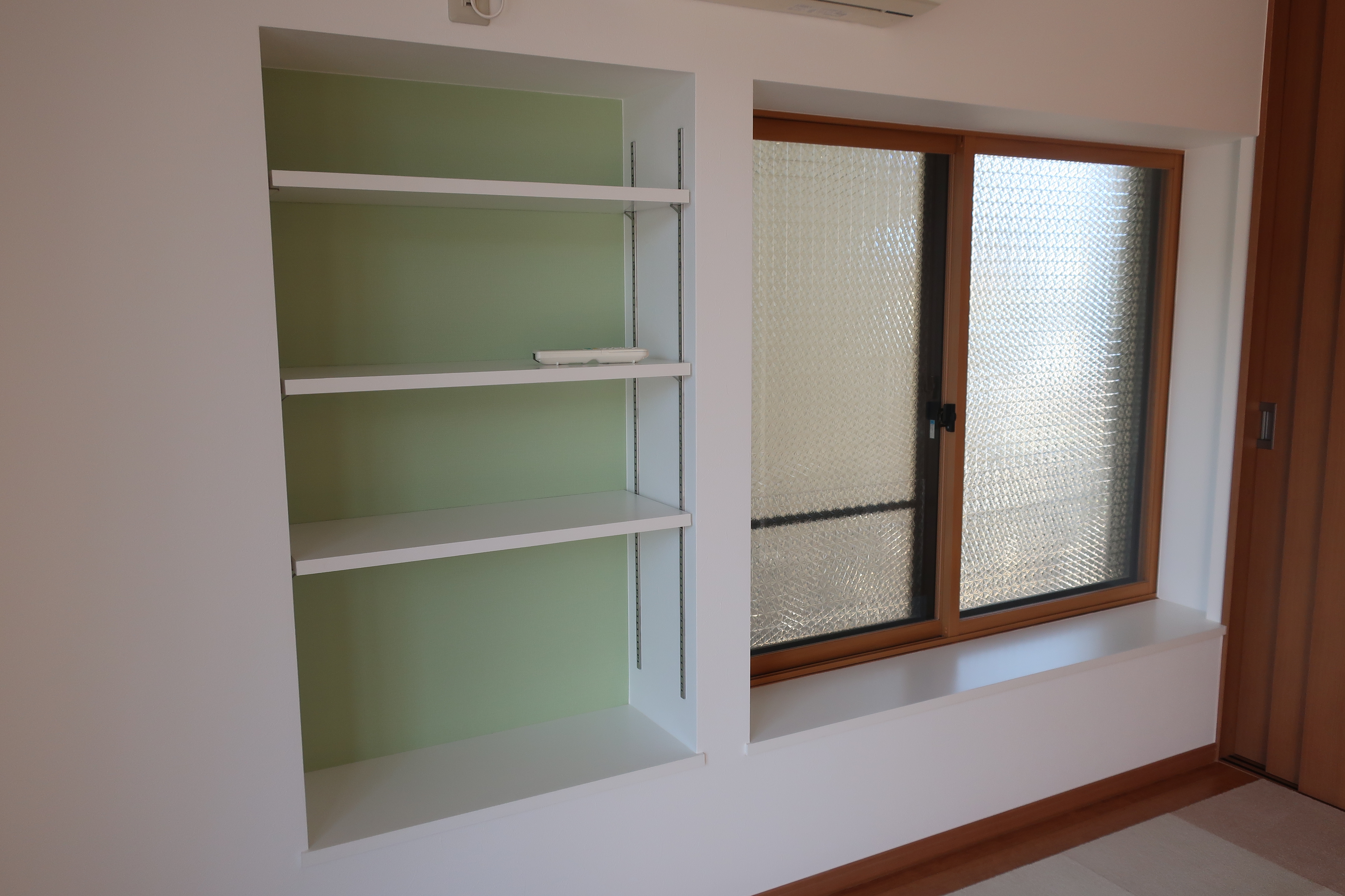 出窓の横に可動棚を造作。