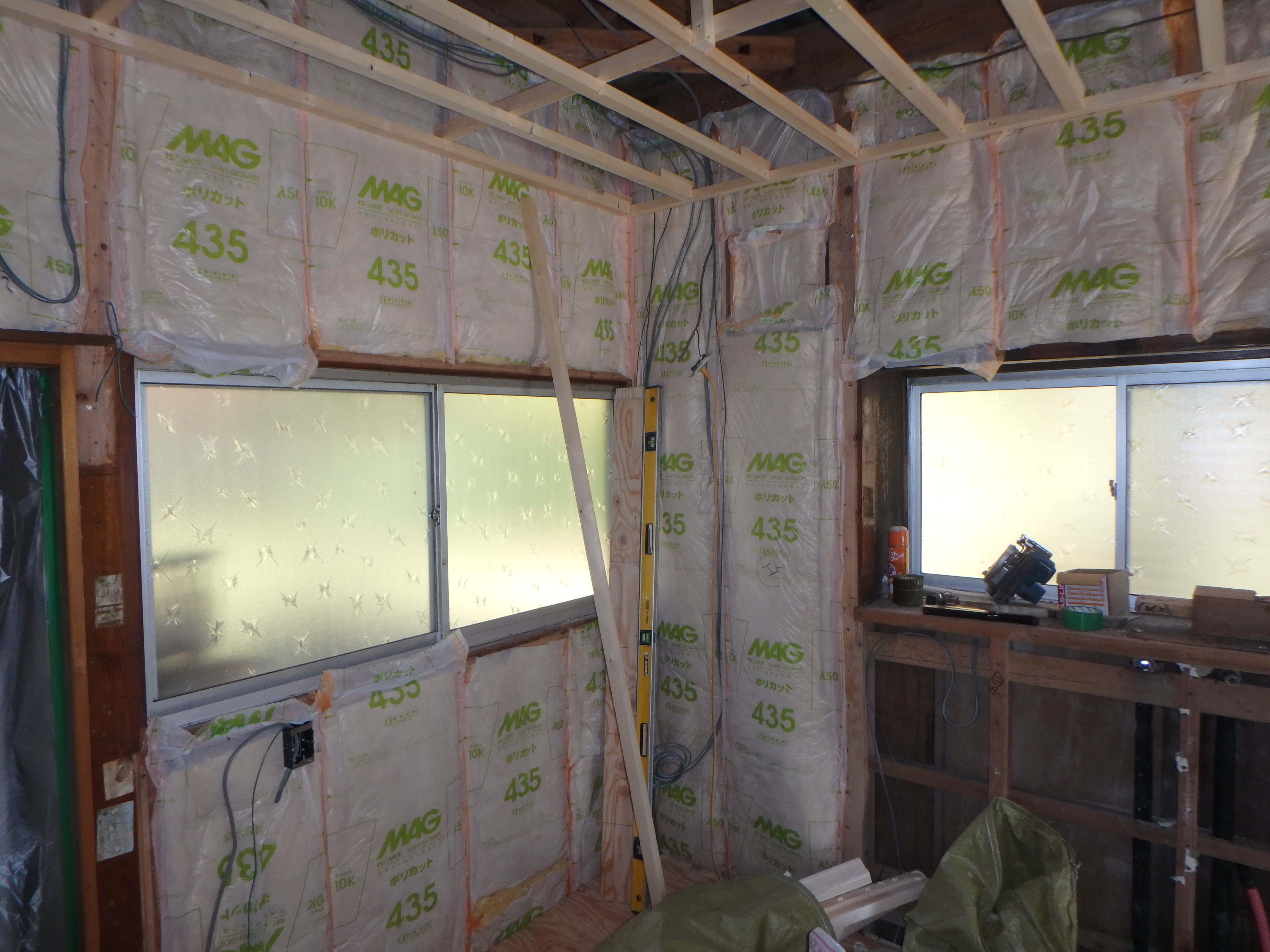 壁にもびっしりと断熱材を施しました。