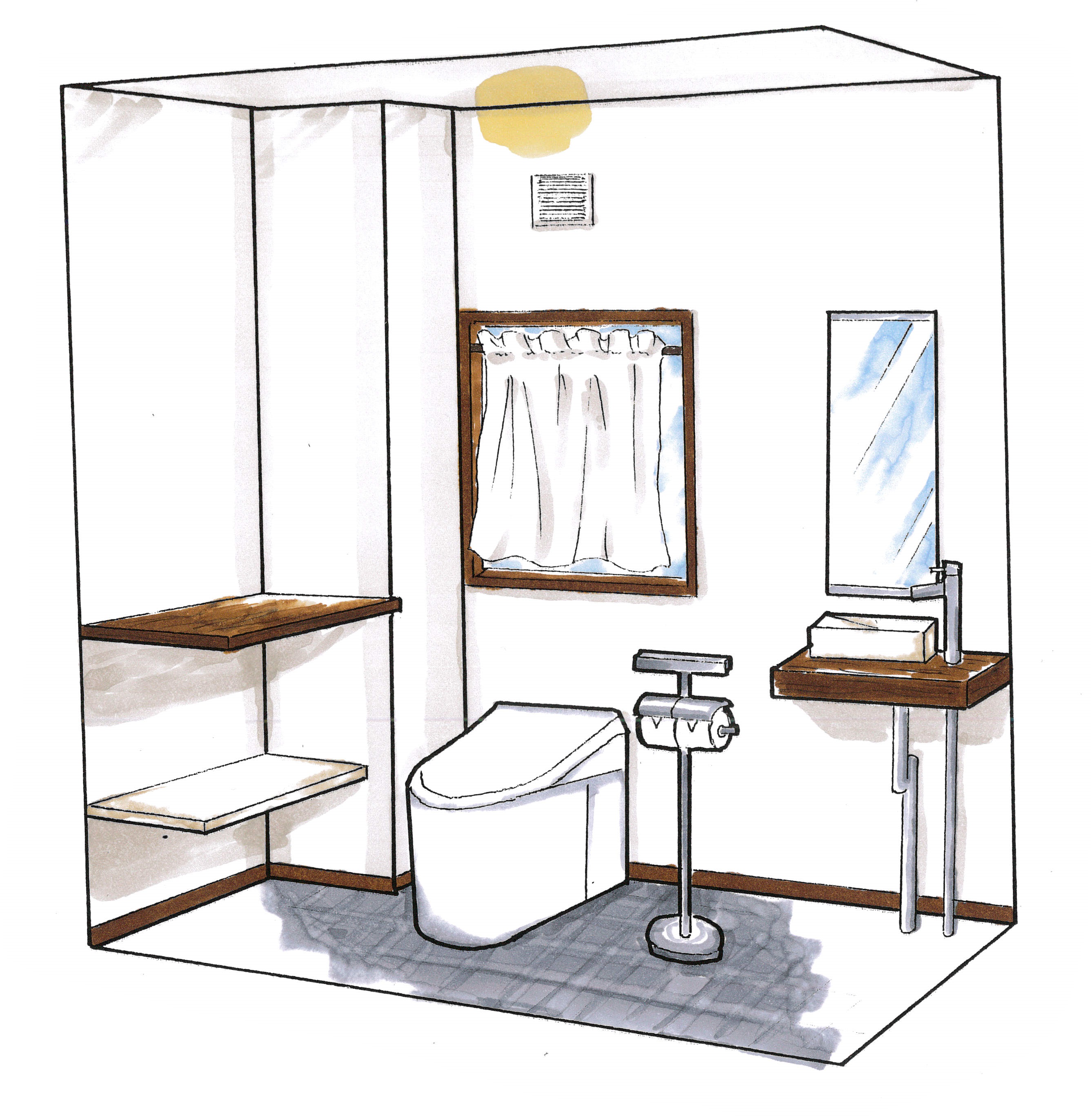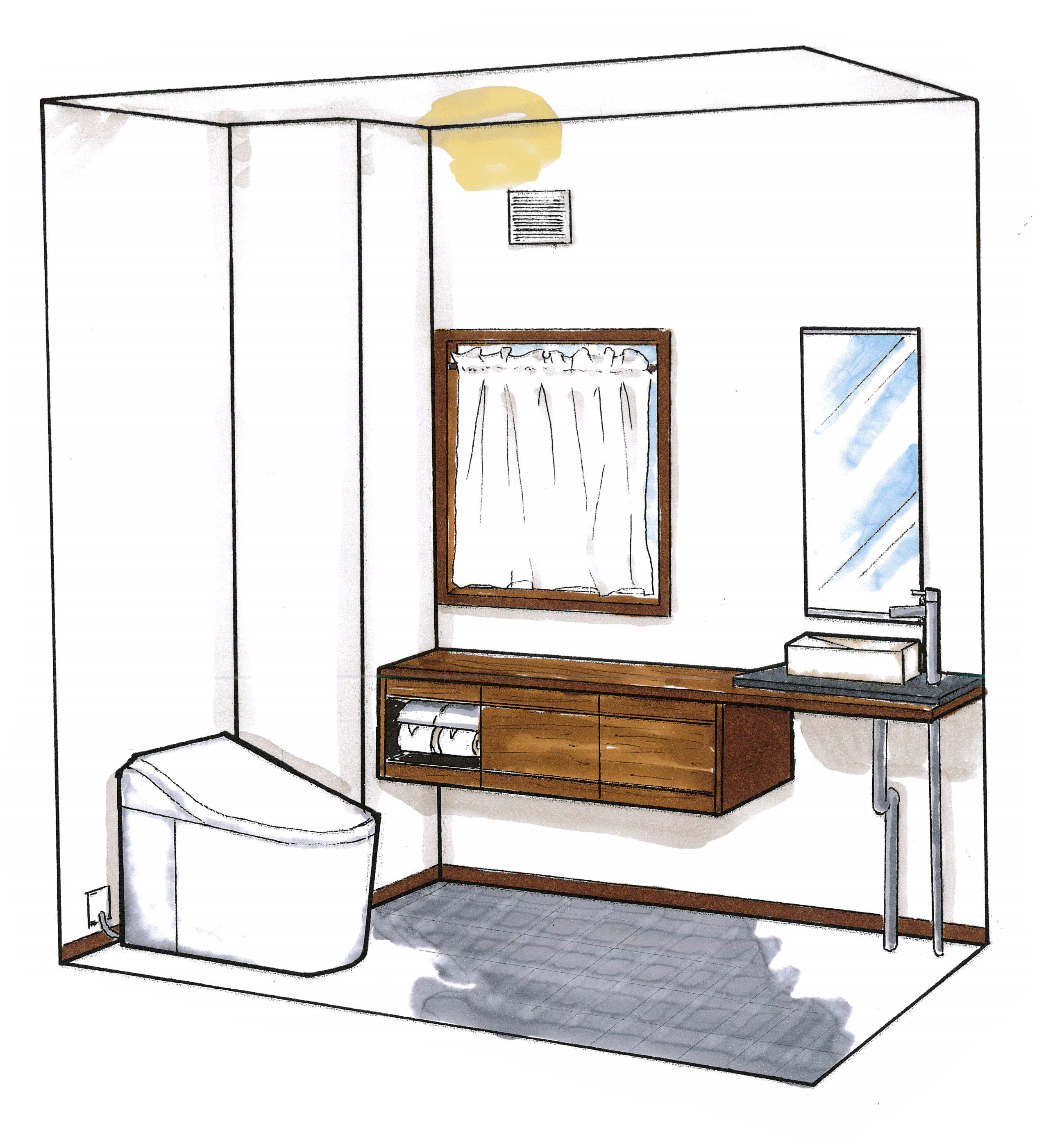 プランのご提案時、今回はいつもと趣向を変えて手描きのパースでご提案を行いました