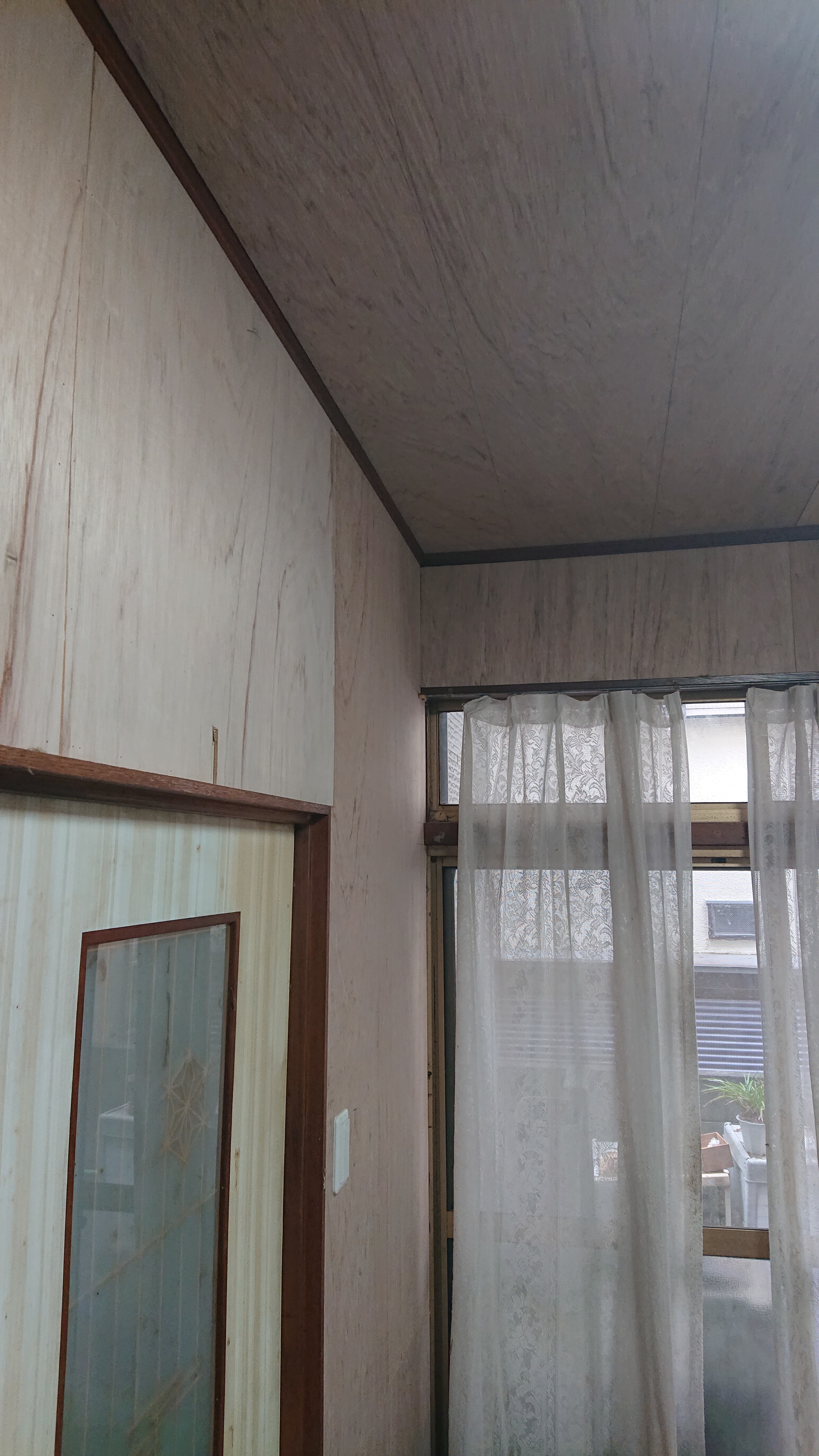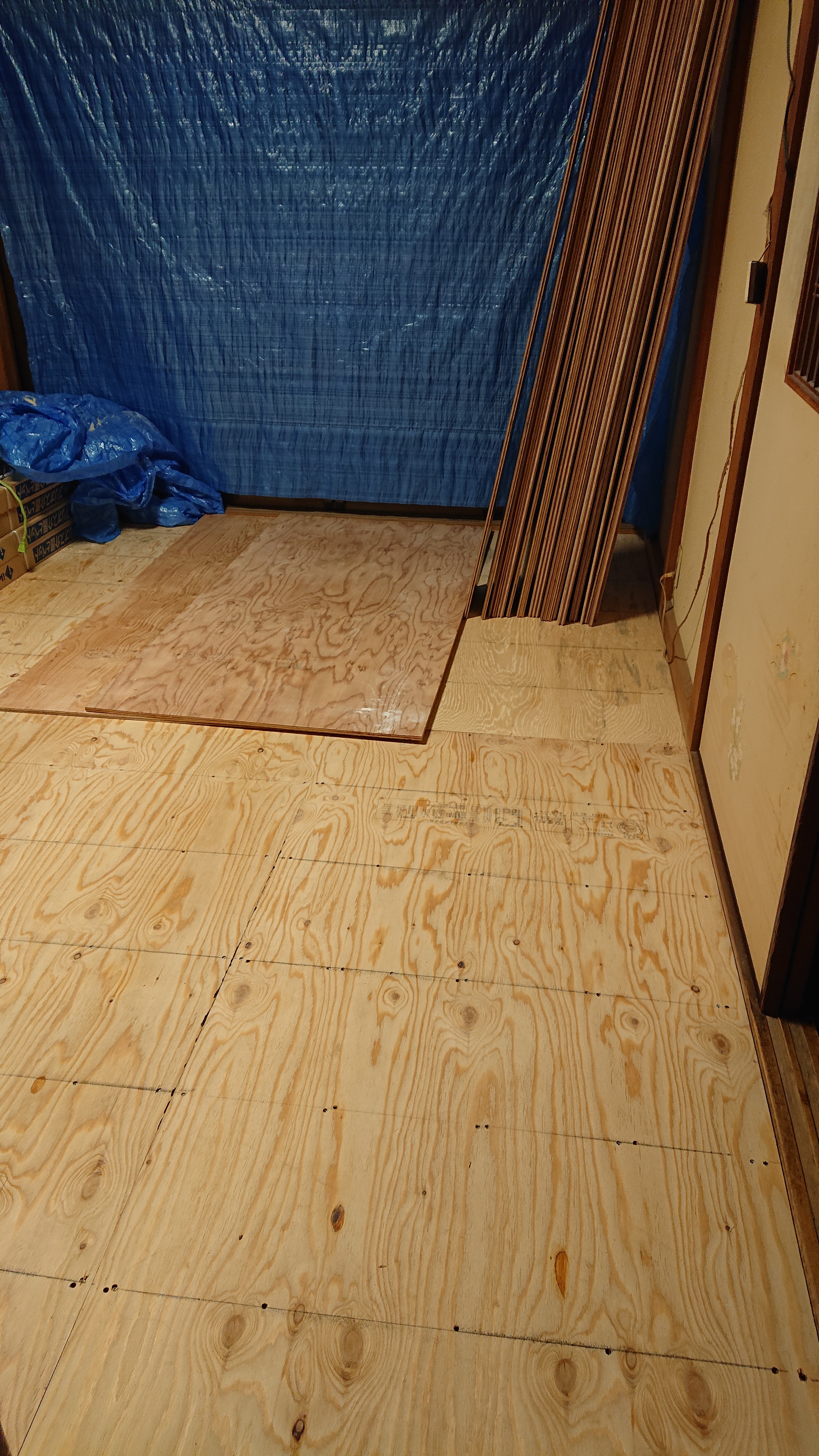 (↑既存が貼替えができないタイプのクロスのため、ベニヤで捨て貼りをしています)