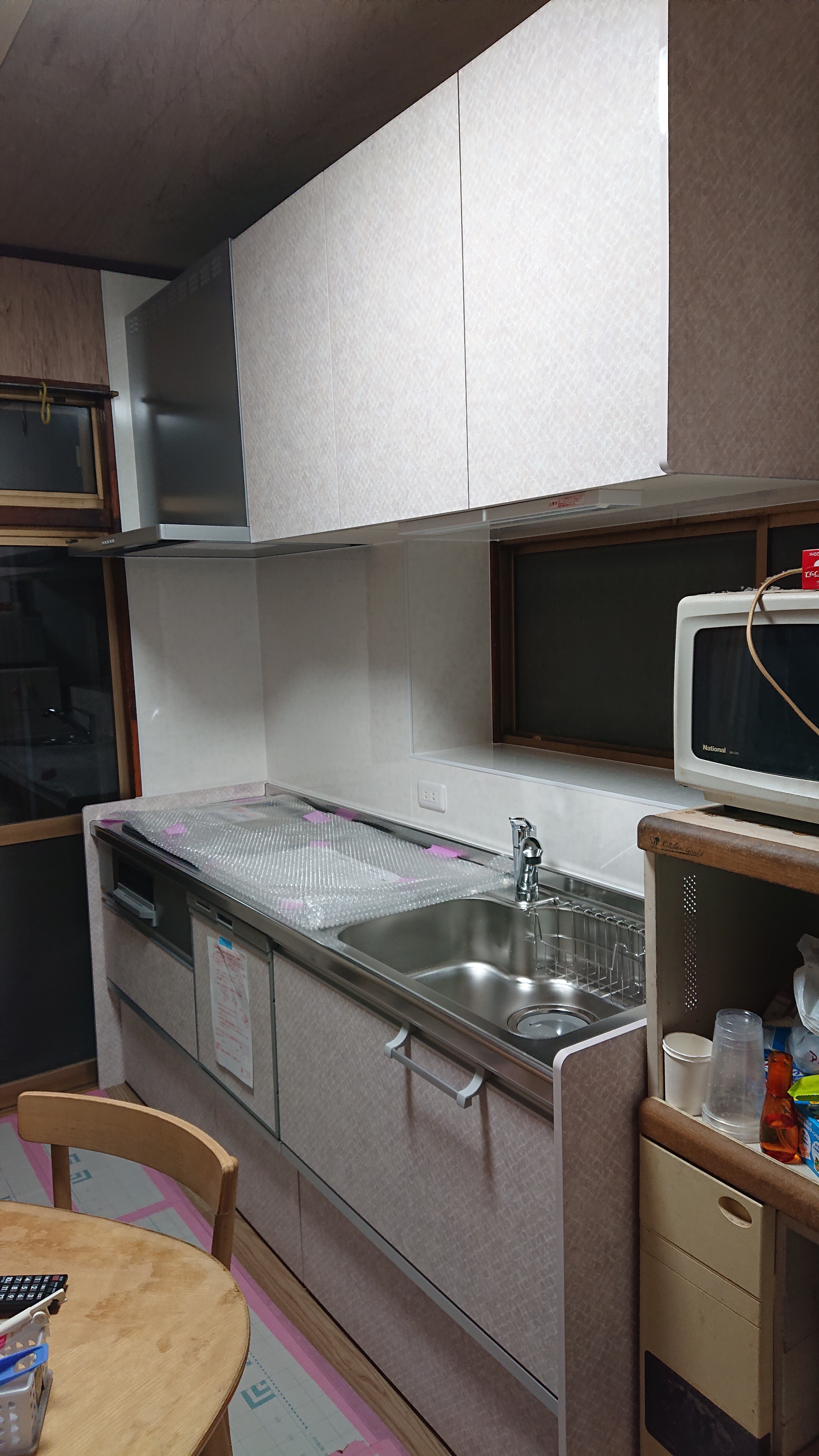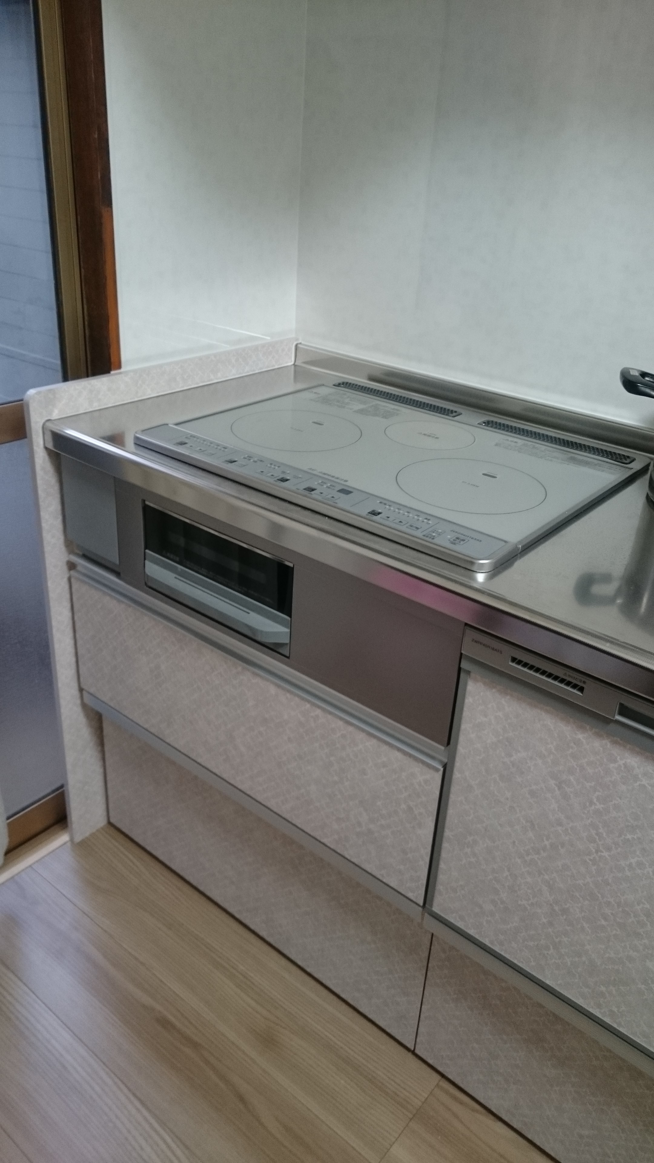 高齢のお母様が夜にキッチンをご使用になるということなので、IHのキッチンに交換します