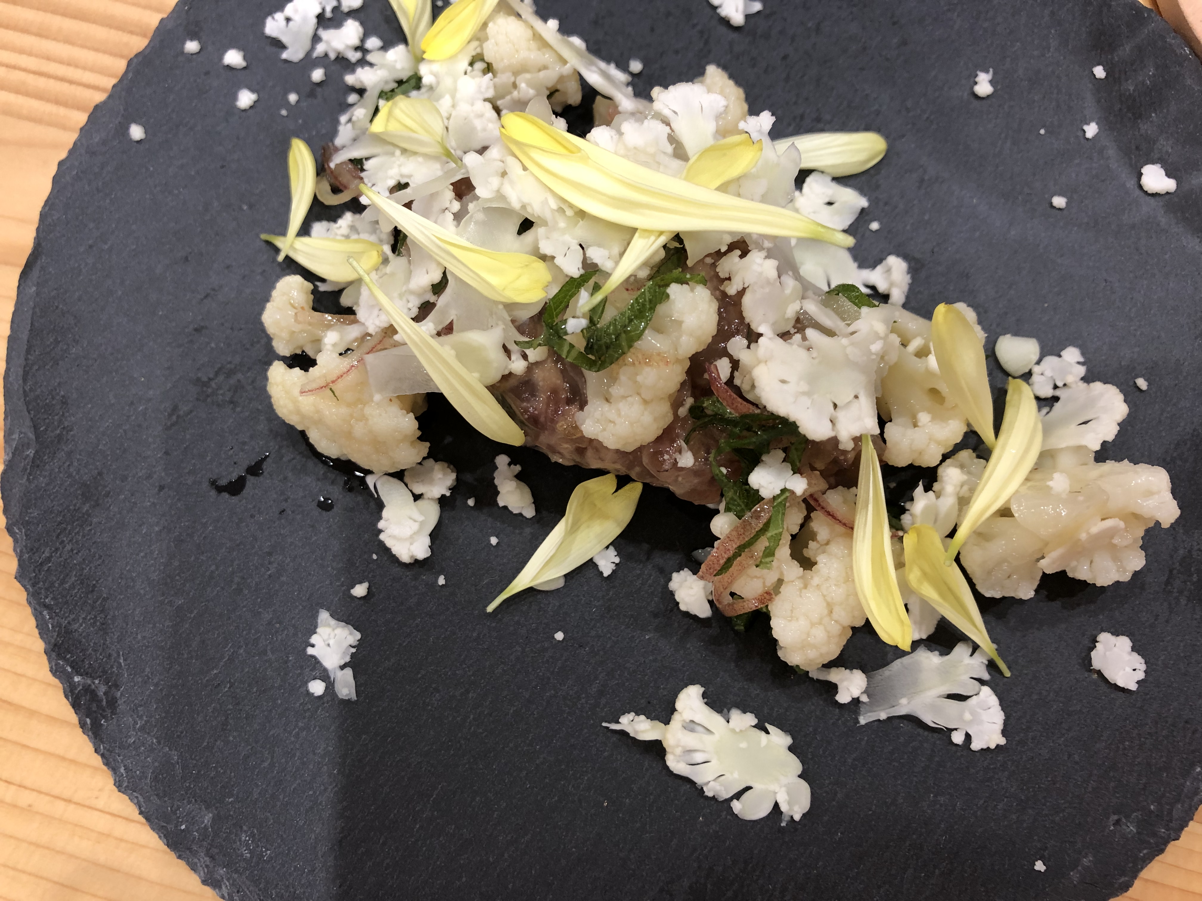 アジのなめろうの旨味とカリフラワーの酸味が絶妙です![]()