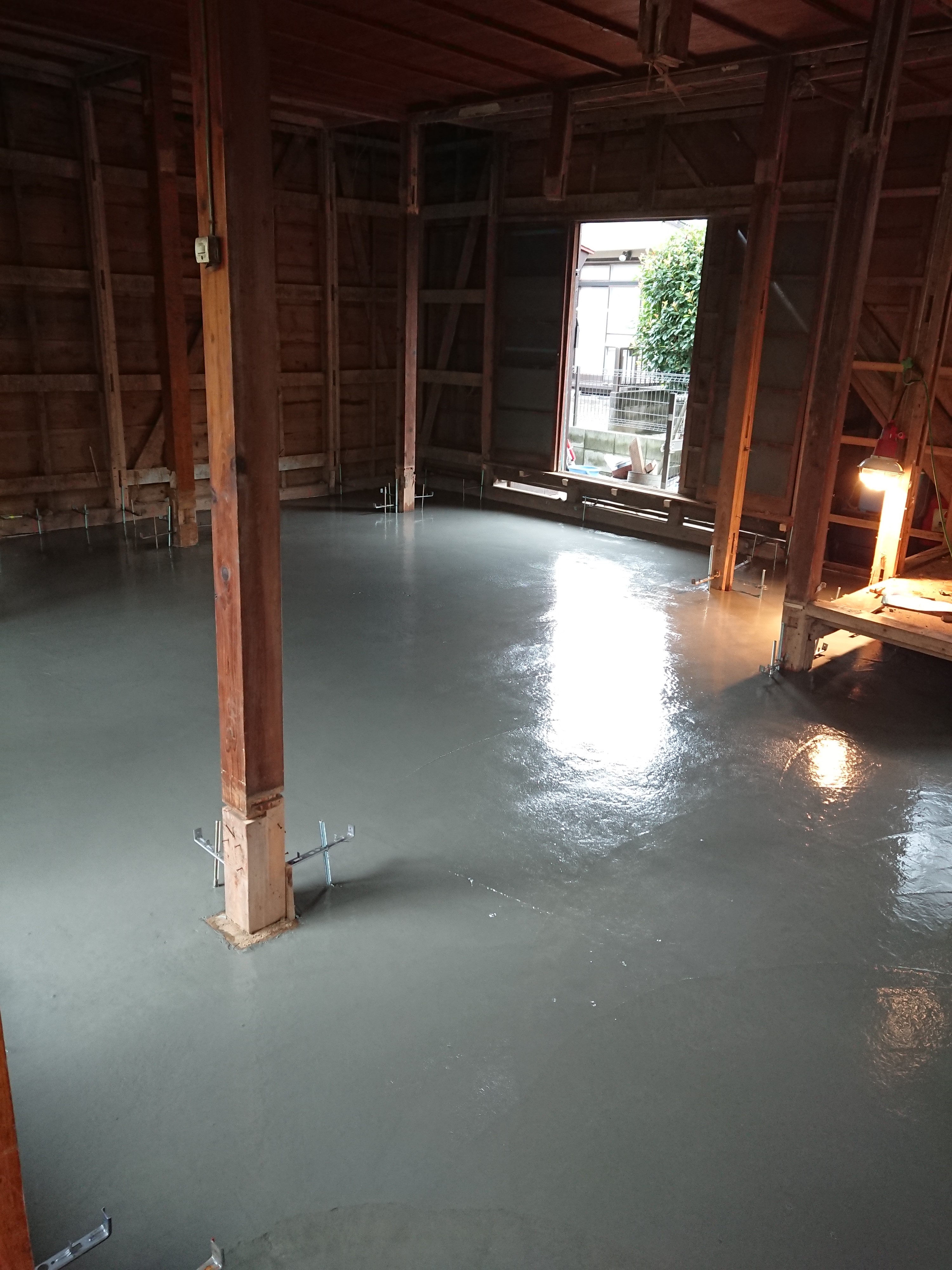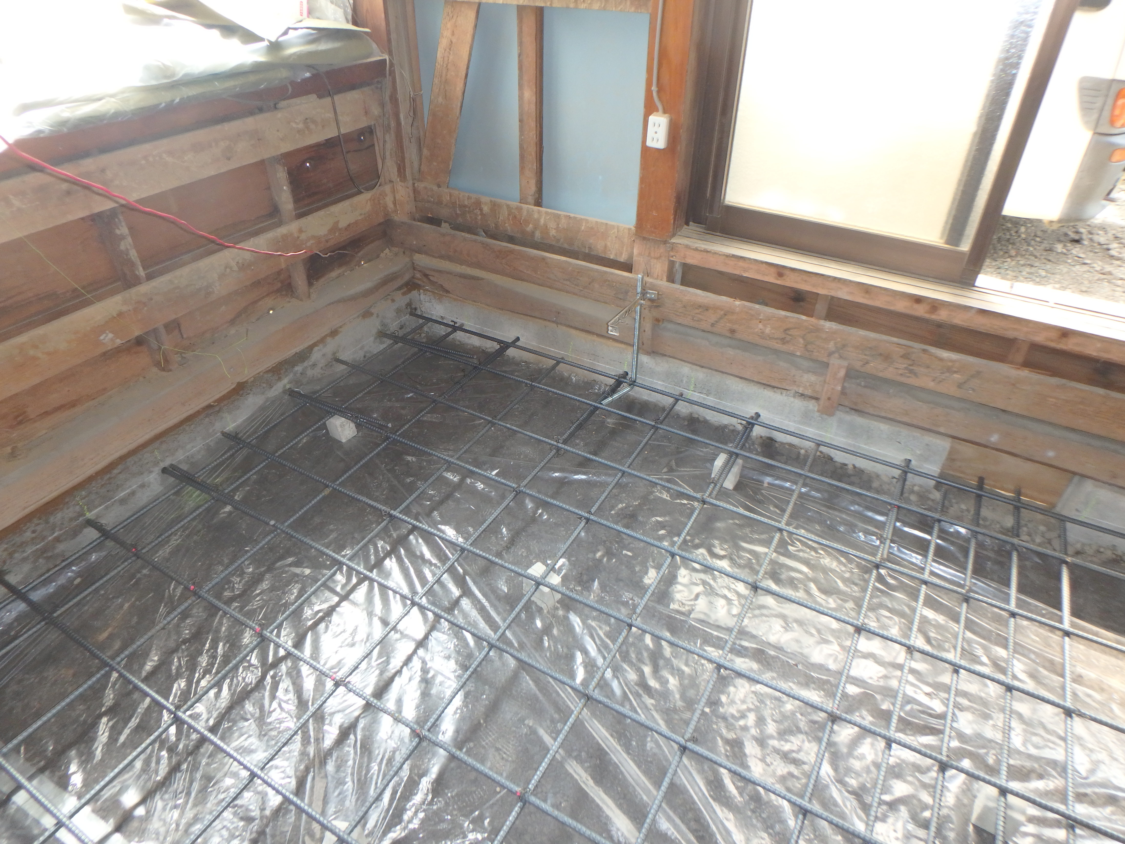 そこで鉄筋を密に入れ、鉄筋コンクリートの『べた基礎』に改修させて頂きました。