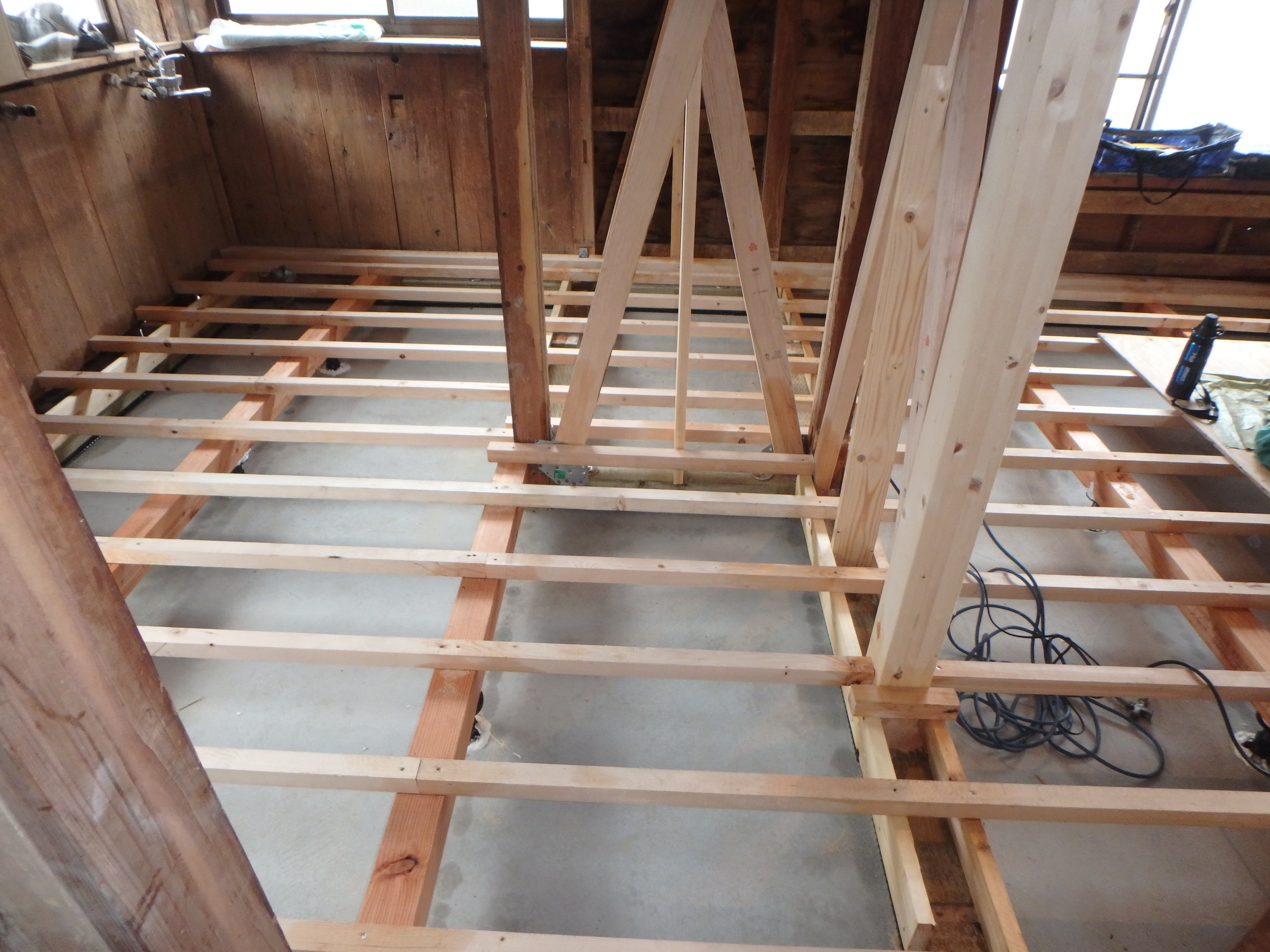強い基礎に土台を固定し、柱や筋交いを増設して強度を飛躍的に