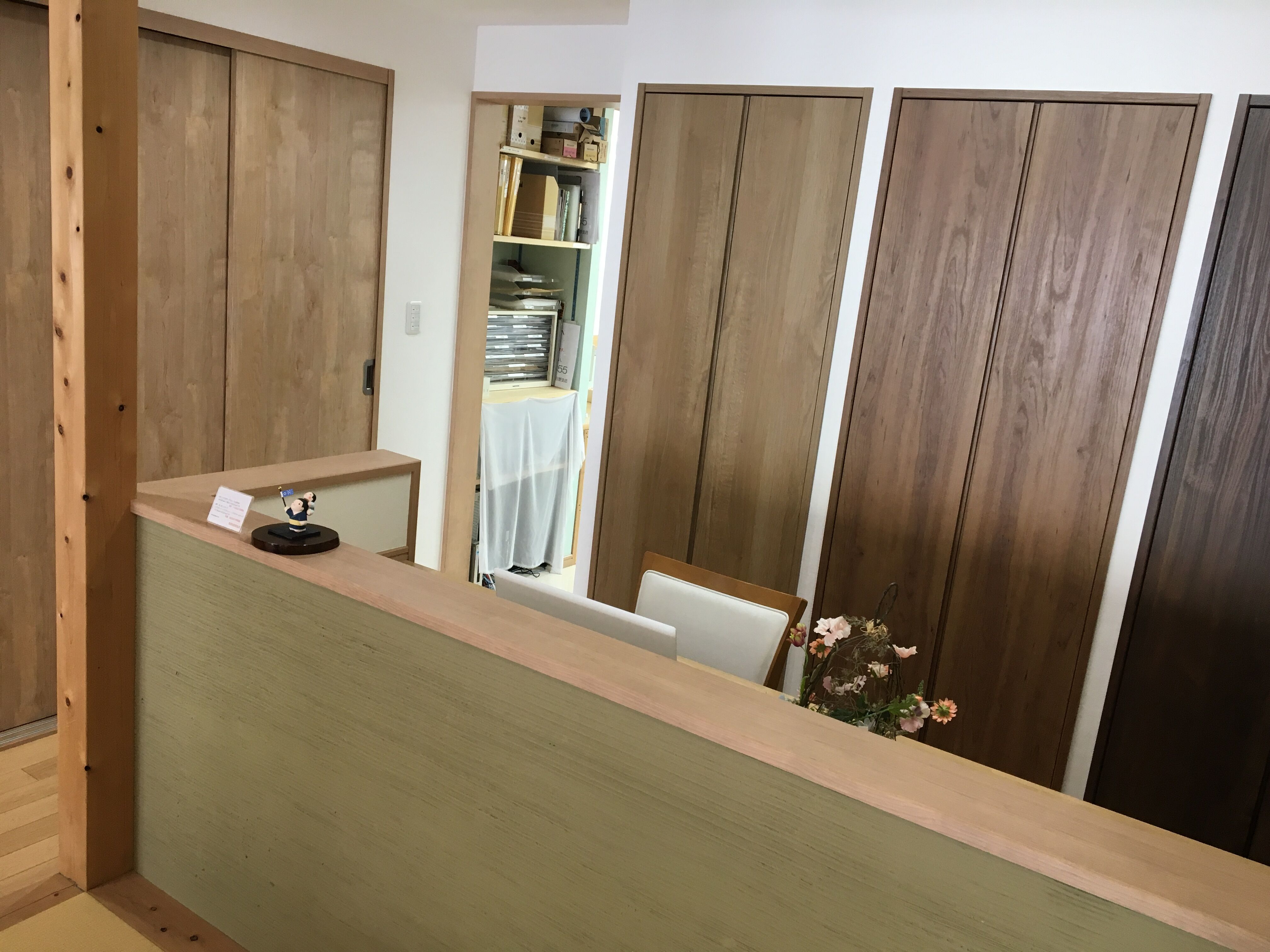 途中で切ることのできない柄のクロスだったため、重いクロスのロールを1人が持ち、もう1人が貼って…と、すごく大変な作業になってしまったようです。