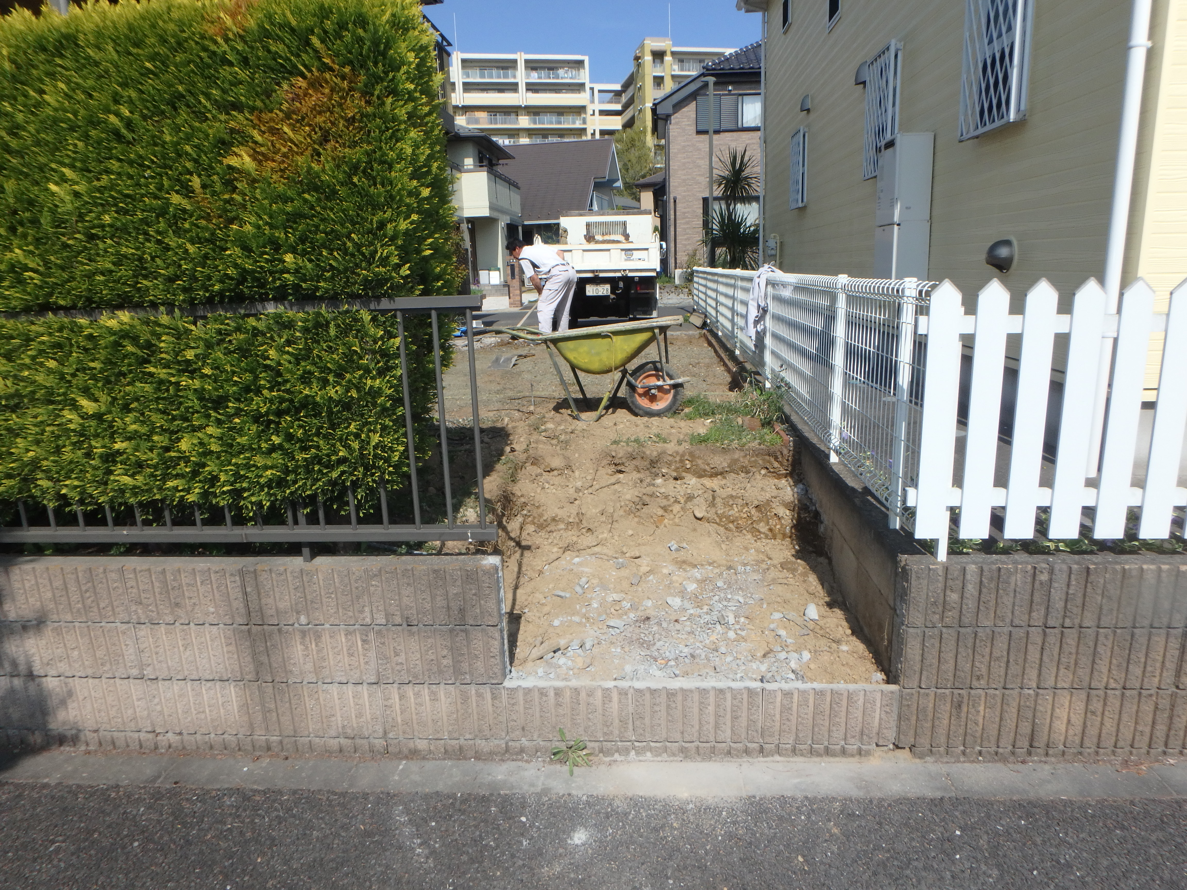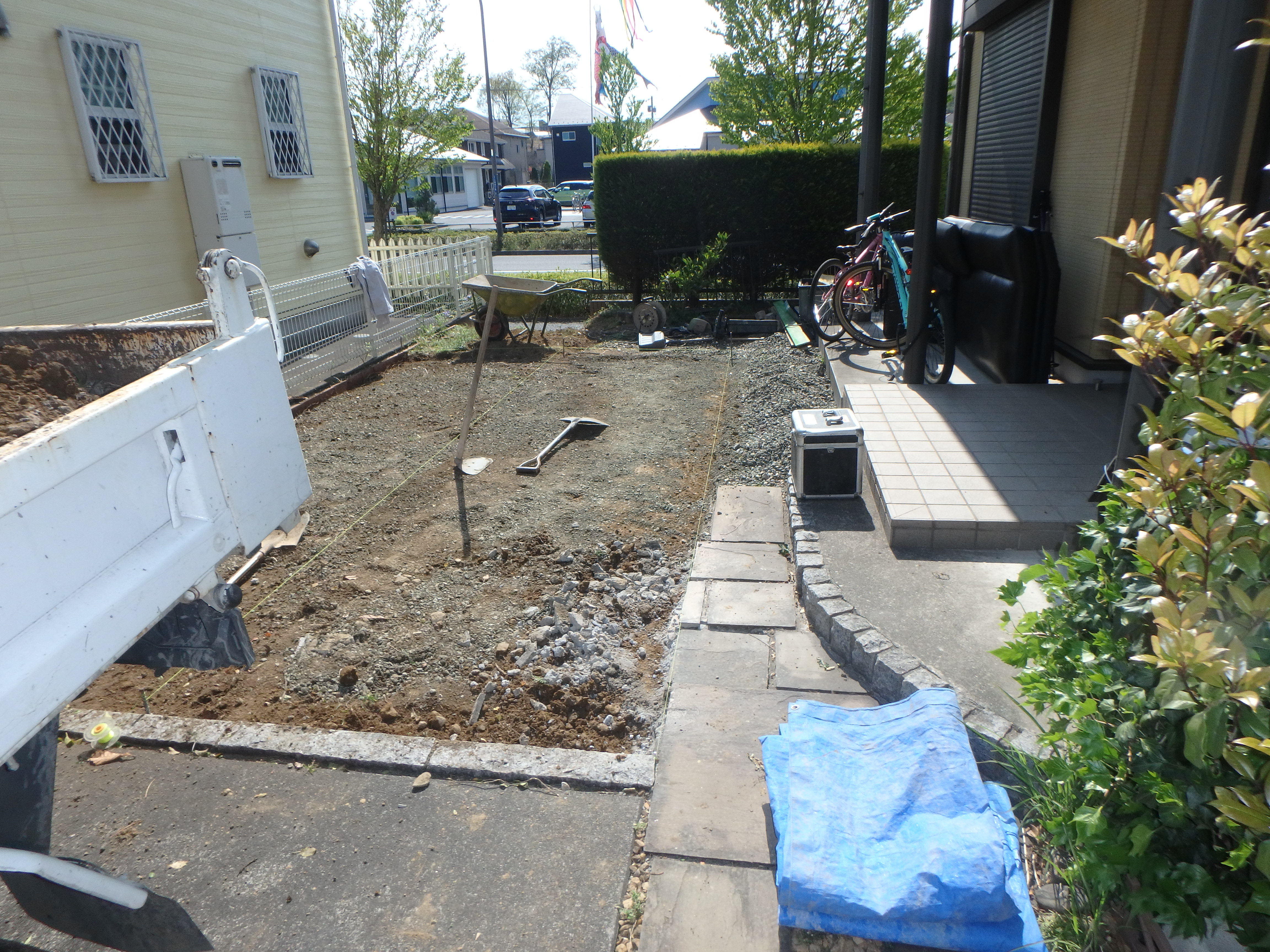 まず最初に植木を撤去し、土をすき取り下地を作りました。