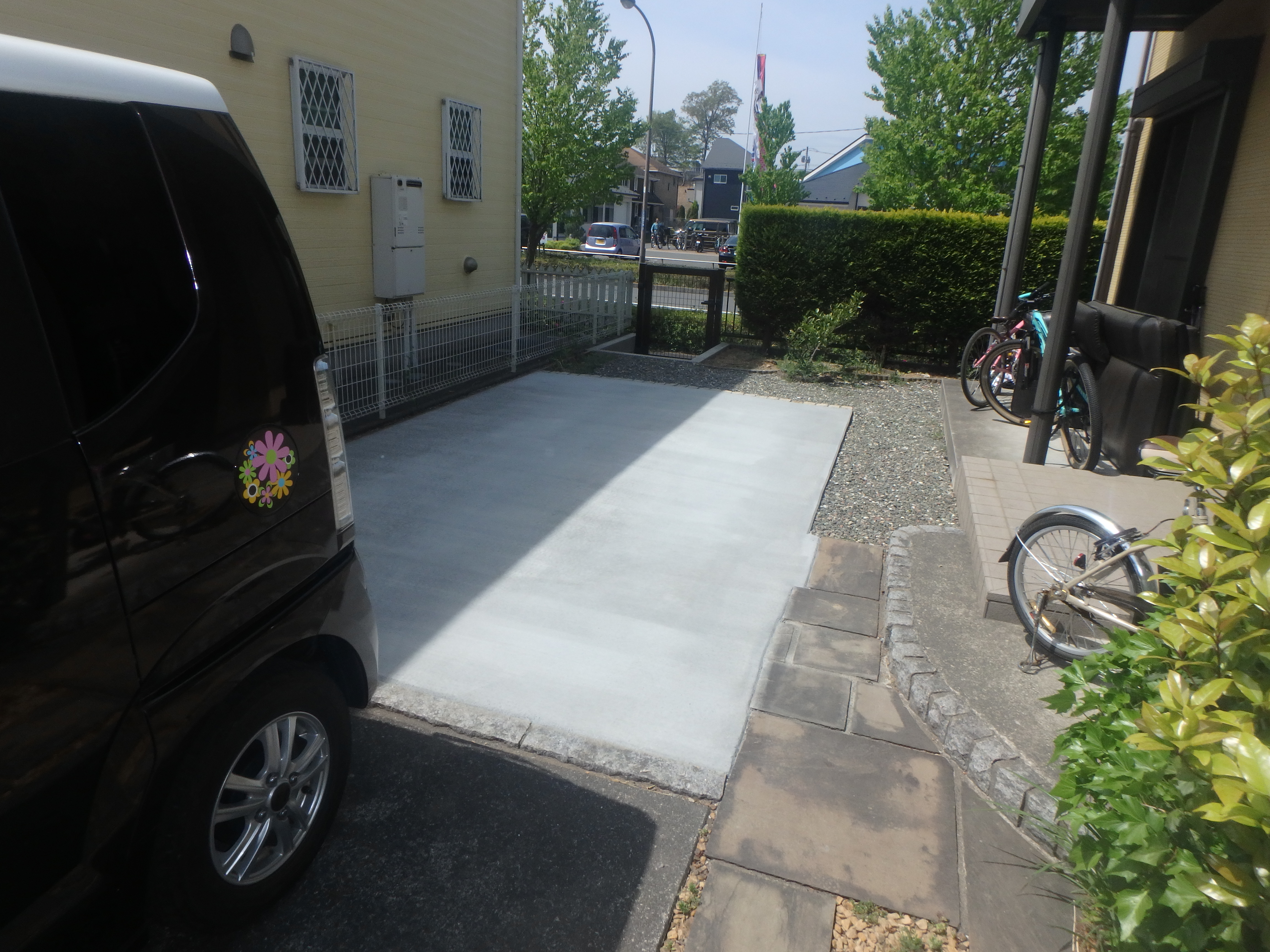 カースペースにコンクリートを打ち綺麗に仕上がった写真です。