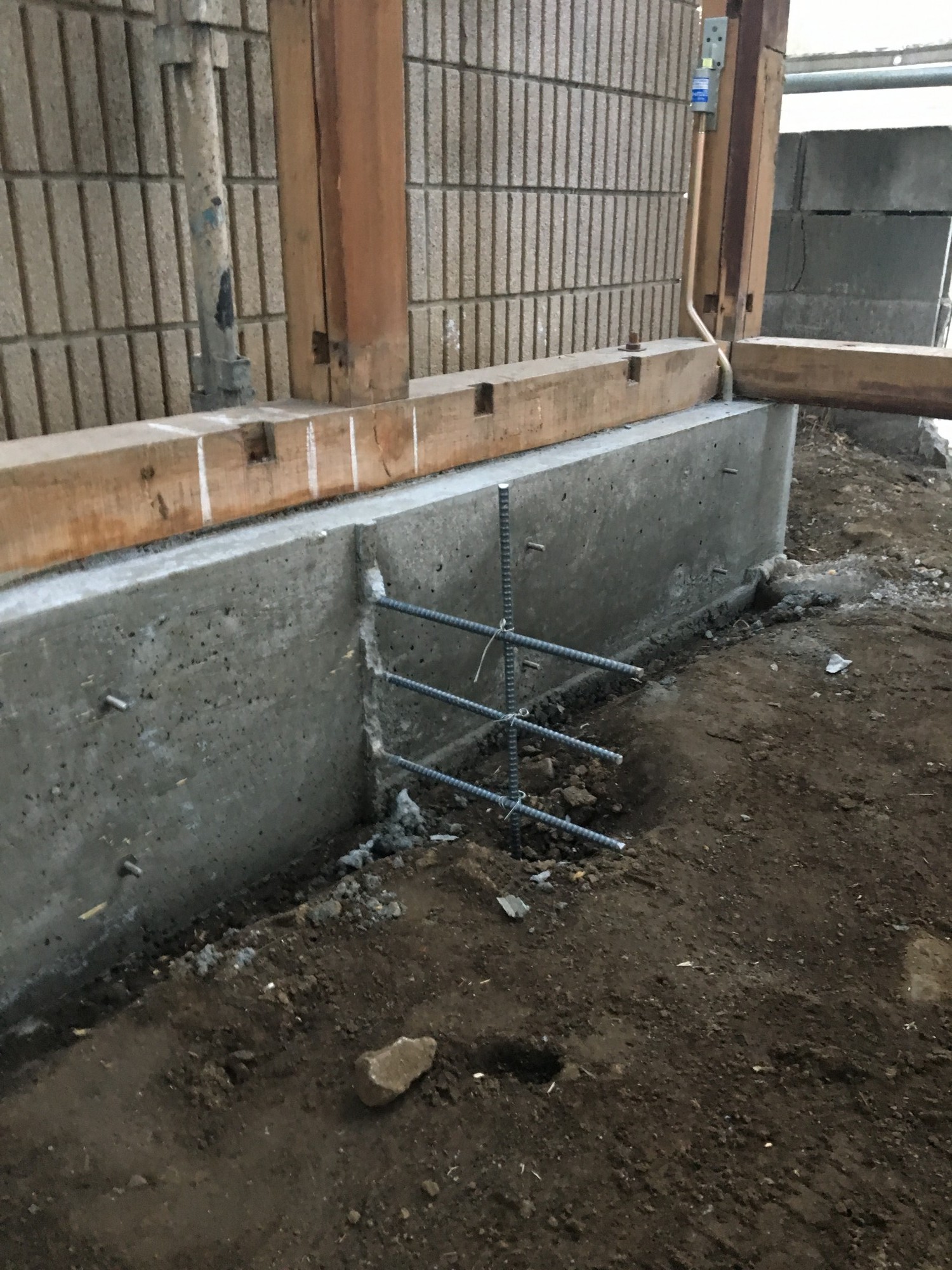 既存の土台の下に型枠を組み、新しい基礎を作っています![]()