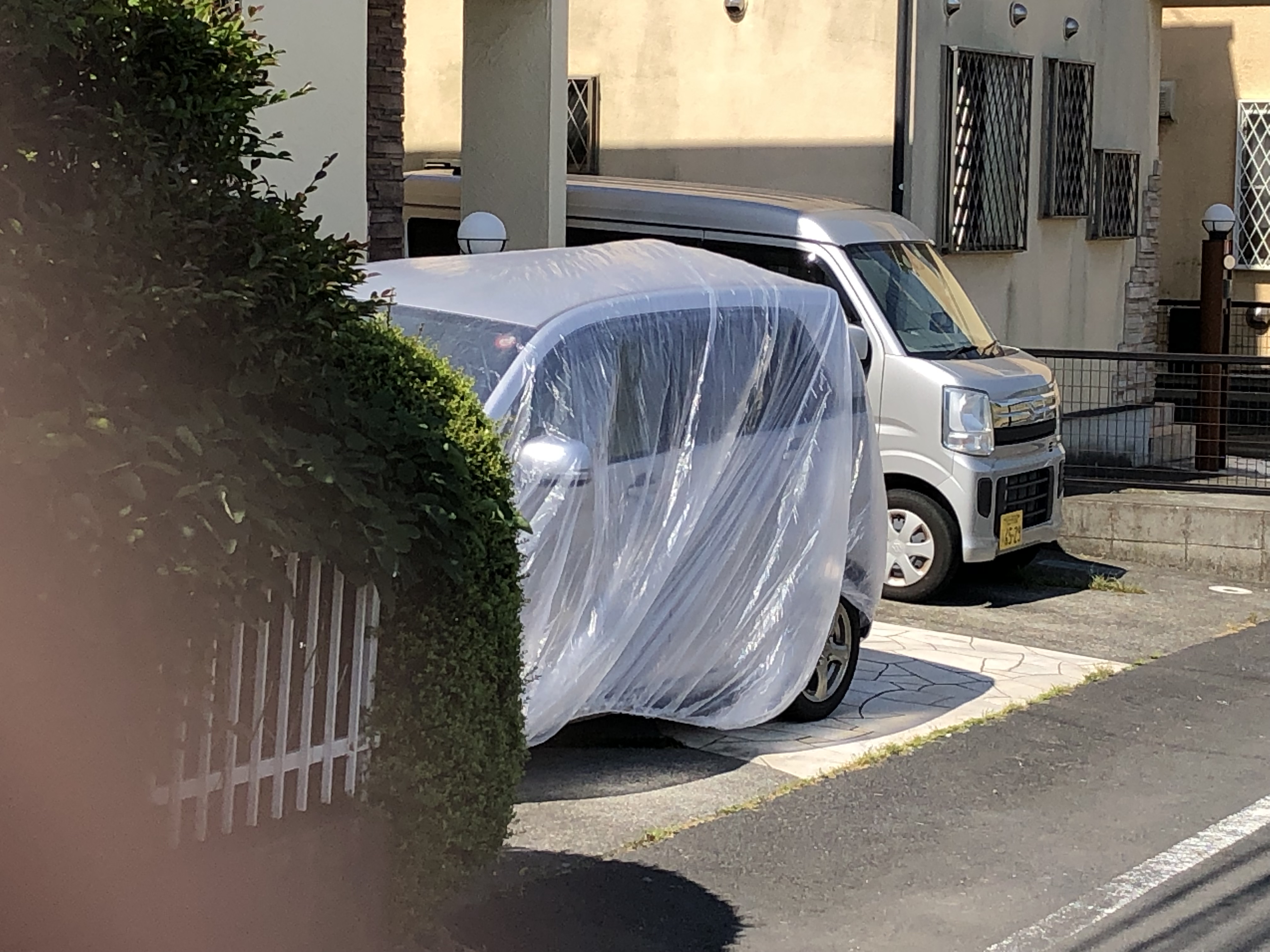 足場をかけ、養生幕で覆い綺麗に生まれ変わる準備完了![]()