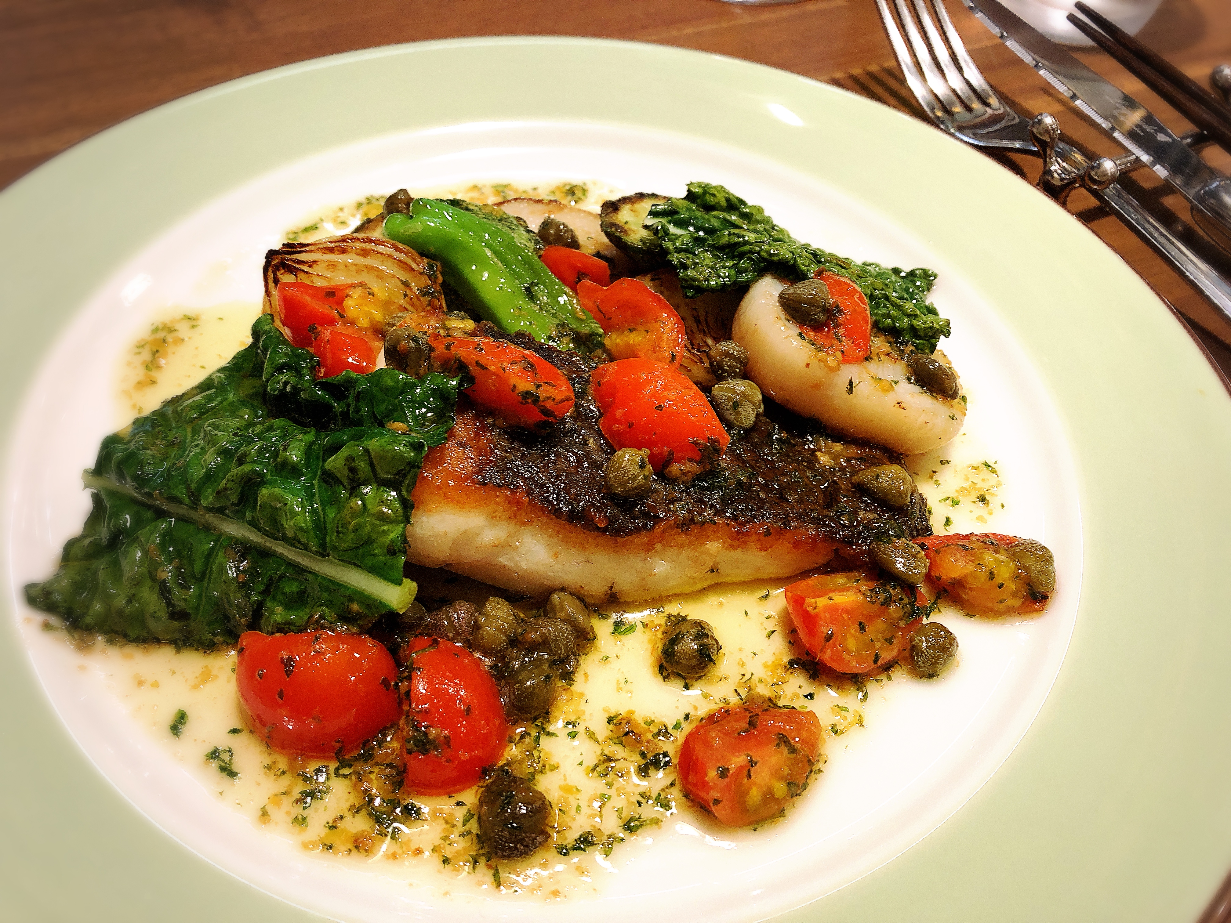 シェフが早朝から市場で仕入れたヒラメとホタテは、