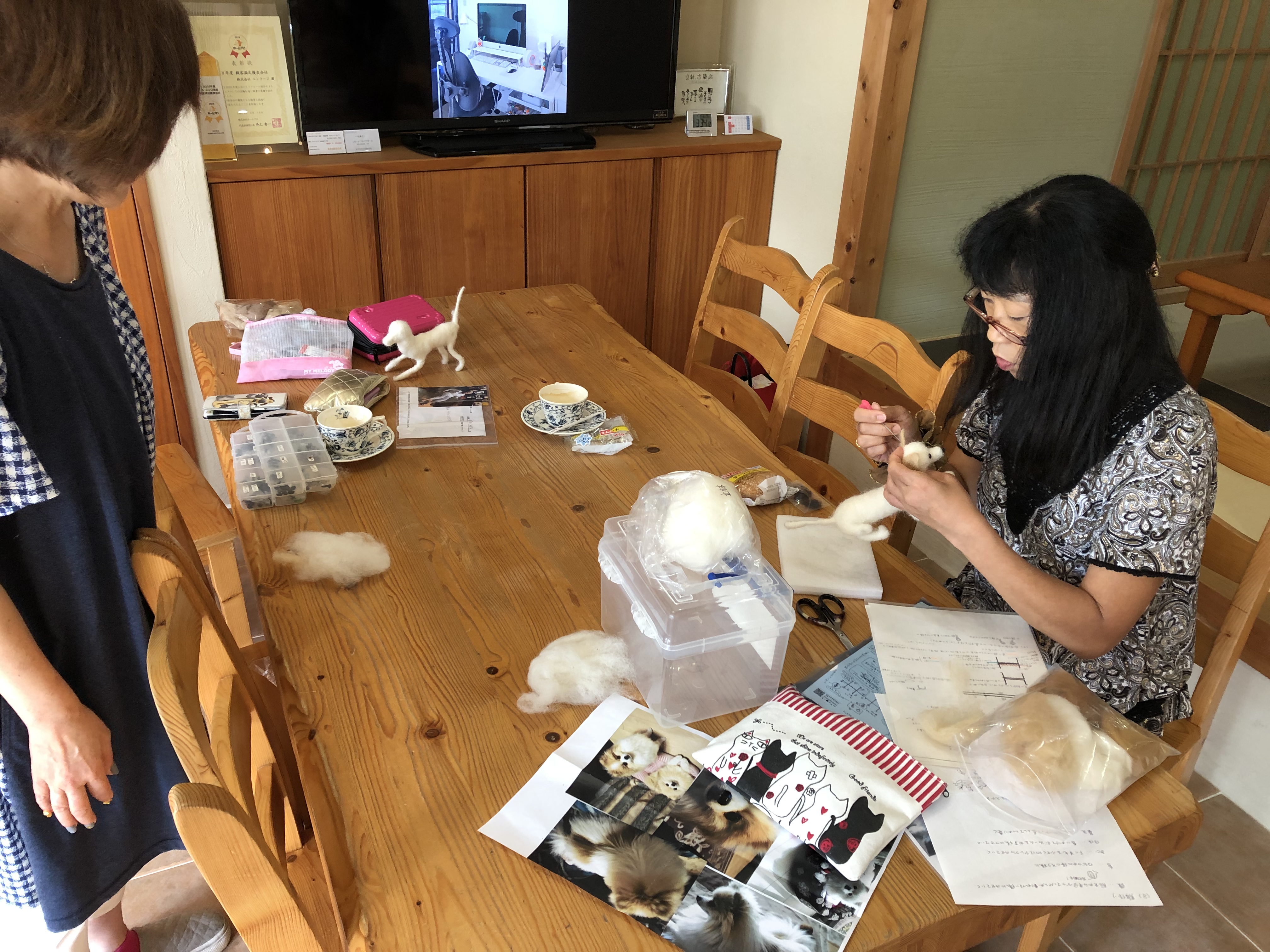 終始和やかなお教室で、愛犬のポメラニアンを製作中![]()