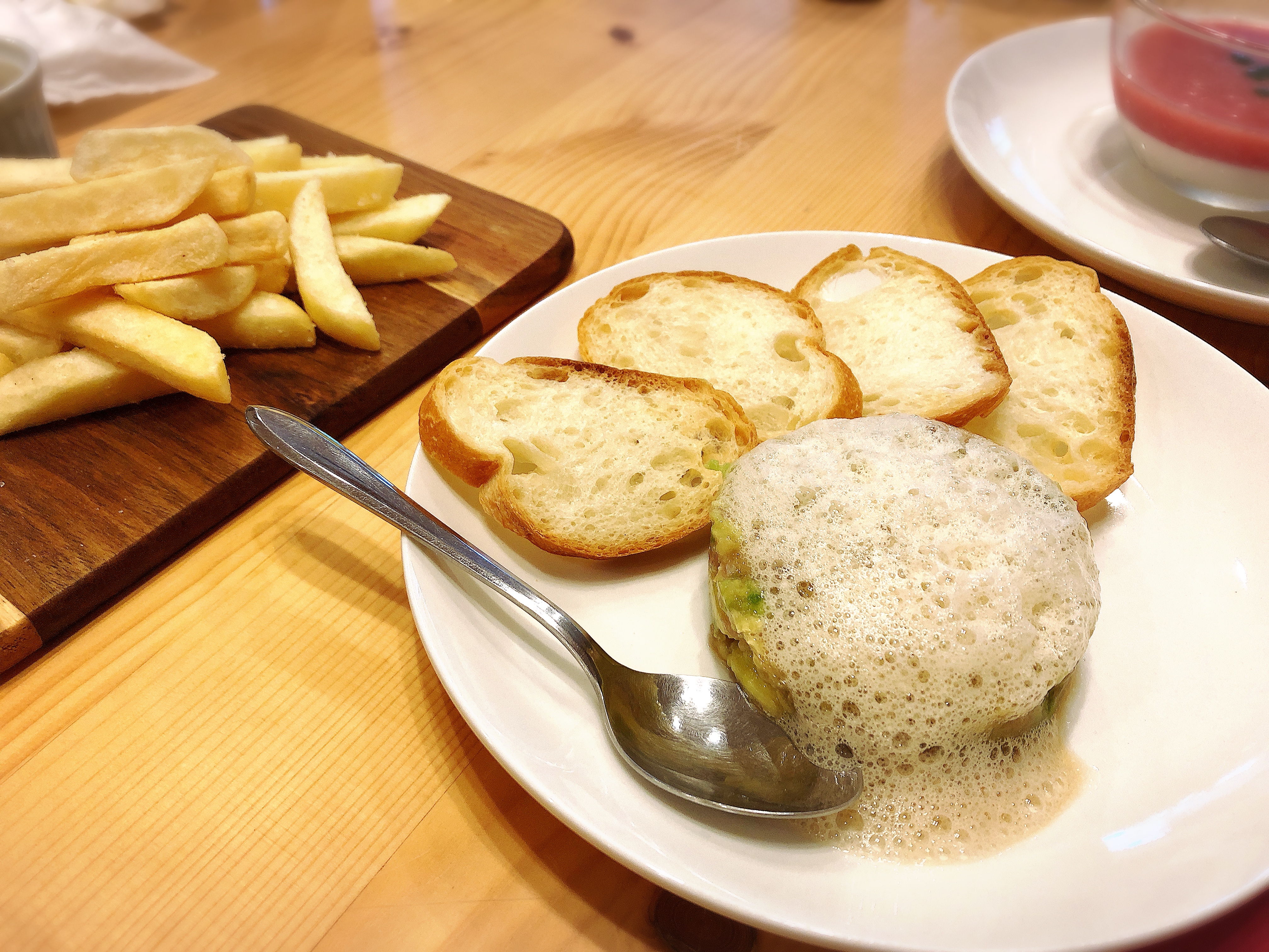 ⑧ポン酢の泡を乗せたマグロとアボガドのタルタル