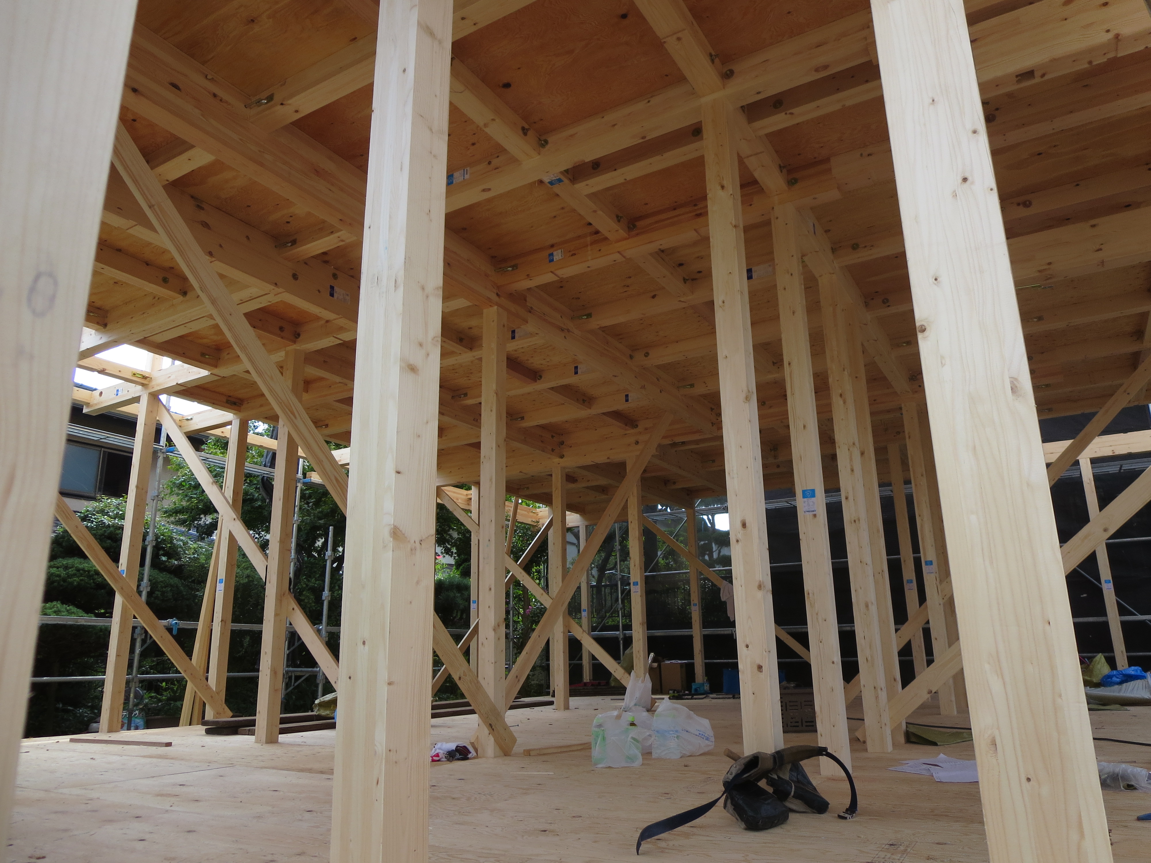 1階の床は根太レス工法で、厚さ24mmの分厚い構造用合板を貼っています。