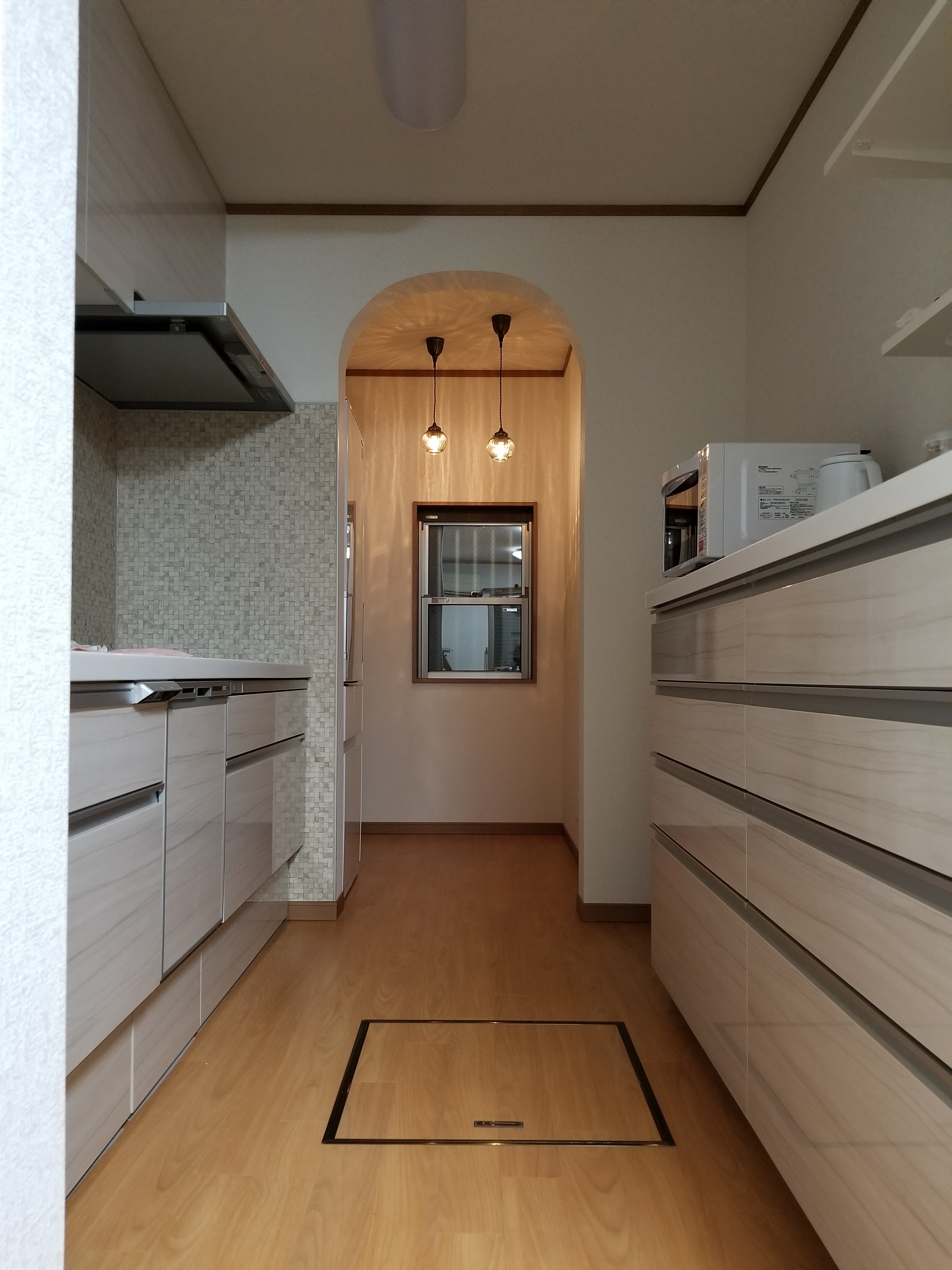 リフォーム前は対面式キッチンでしたが、パントリーと連続性を持たせるため