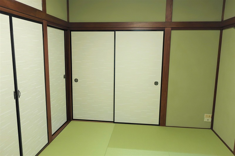 写真ではわかりづらいですが、襖紙の控えめなピンク色と花びらの小柄で、H様の優しい雰囲気を感じられる和室になりました