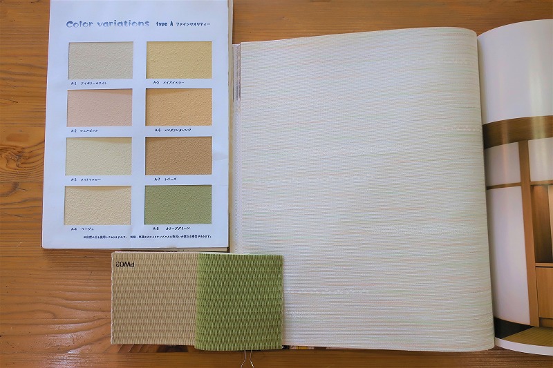 和室の壁と畳には、当社ショールームにご来店の際H様に気に入ってい頂いたグリーンの珪藻土と、和紙でできた縁なし畳をご採用頂きました