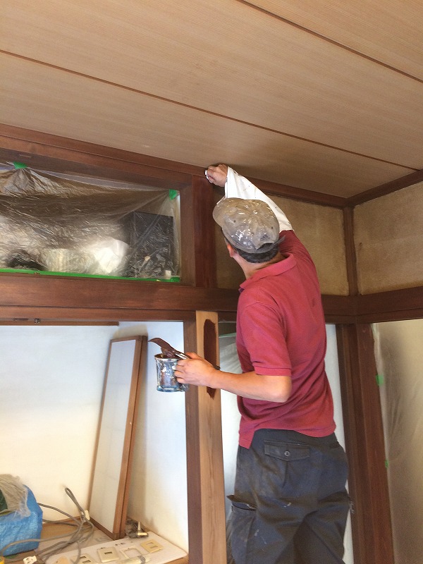 柱や長押などの木部は床柱の赤茶色に合わせて塗装をしました。